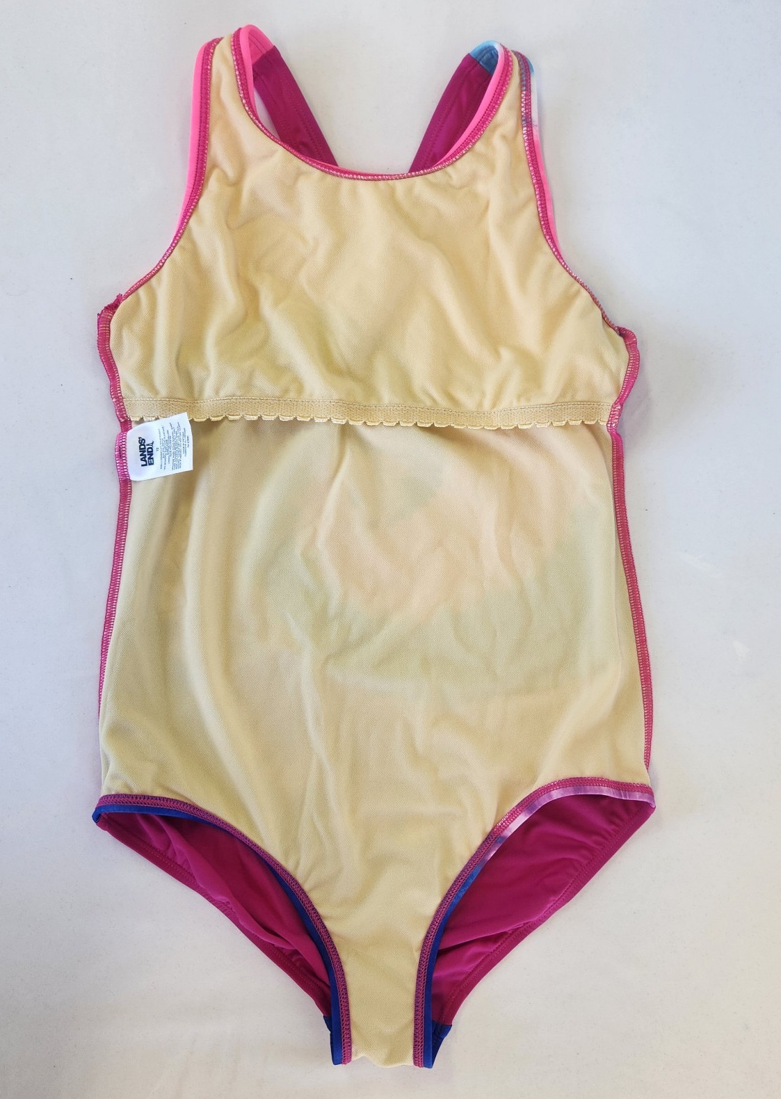 Girls Lands' End Racerback One Piece Swimsuit, Electric Blue Tie Dye Sz 10,12,14