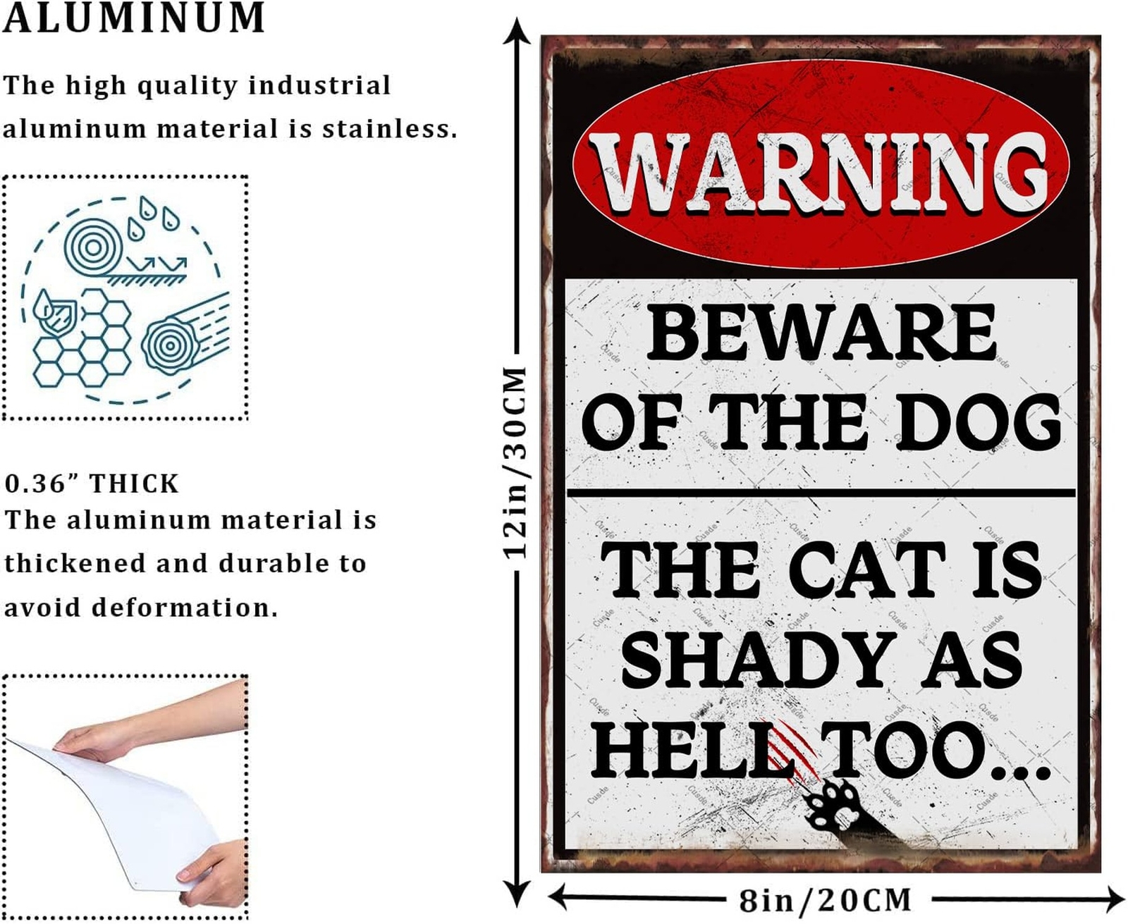 Cusde Warning Metal Tin Sign Beware of the Dog the Cat is Shady As Hell Too F...