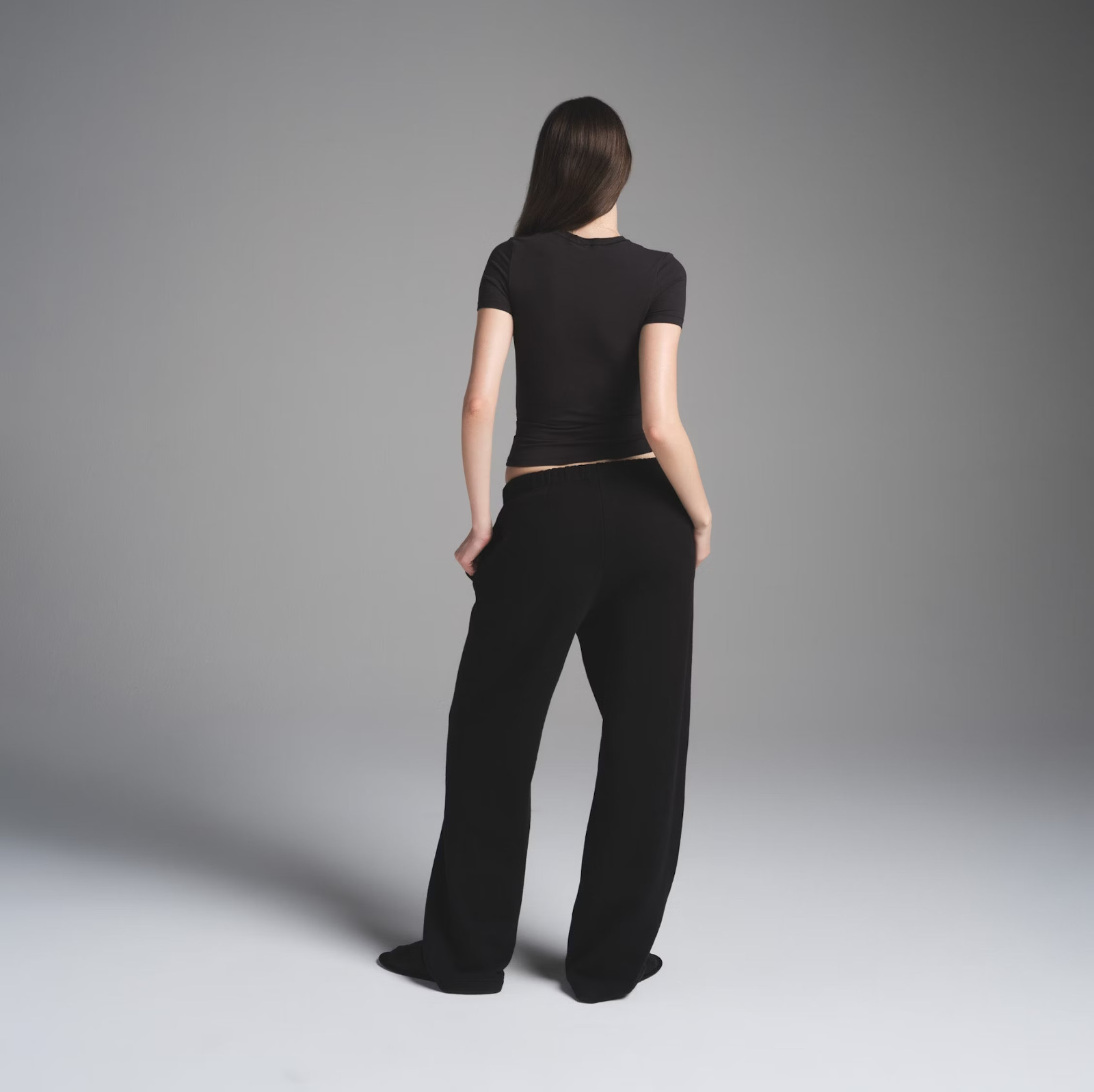 как выглядит Skims Cotton Fleece Classic Straight Leg Pant in Onyx, Size Small фото