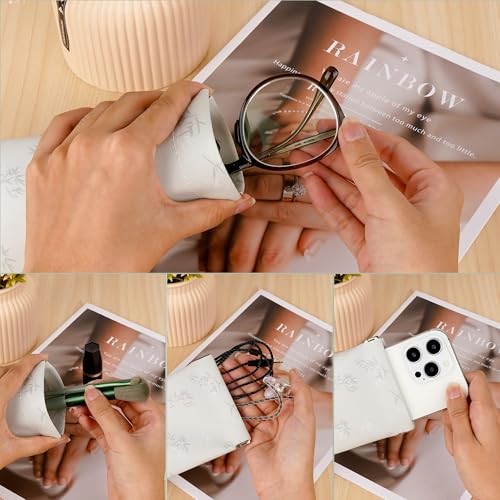 2 Pack Eyeglass Pouches, Elegant Leaf Pattern, Soft Squeeze Top Glasses Cases