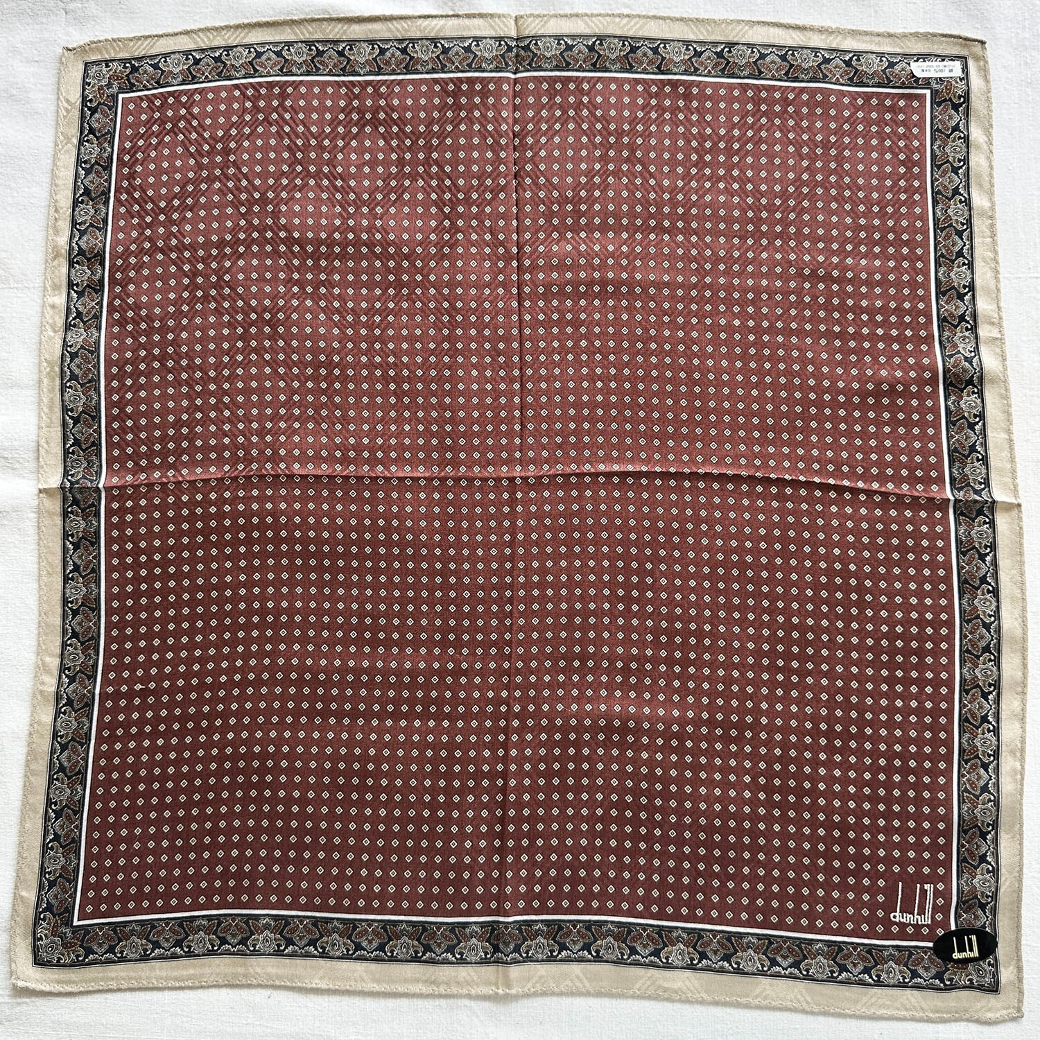VTG dunhill Handkerchief Brown Cotton Geometric Border Paisley Pocket Square 19