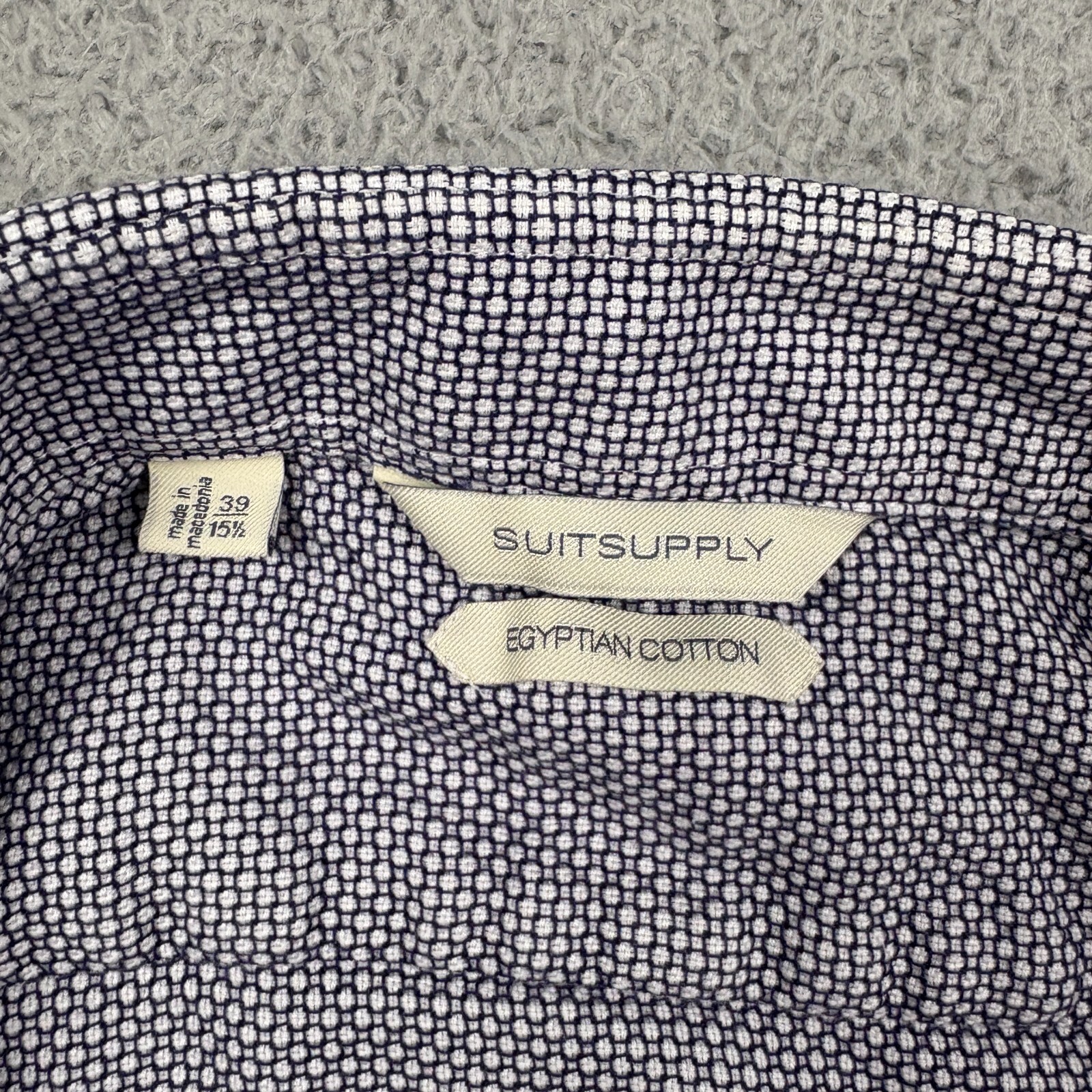 как выглядит SuitSupply Shirt Mens 15.5 Blue White Egyptian Cotton Textured Canclini Button фото