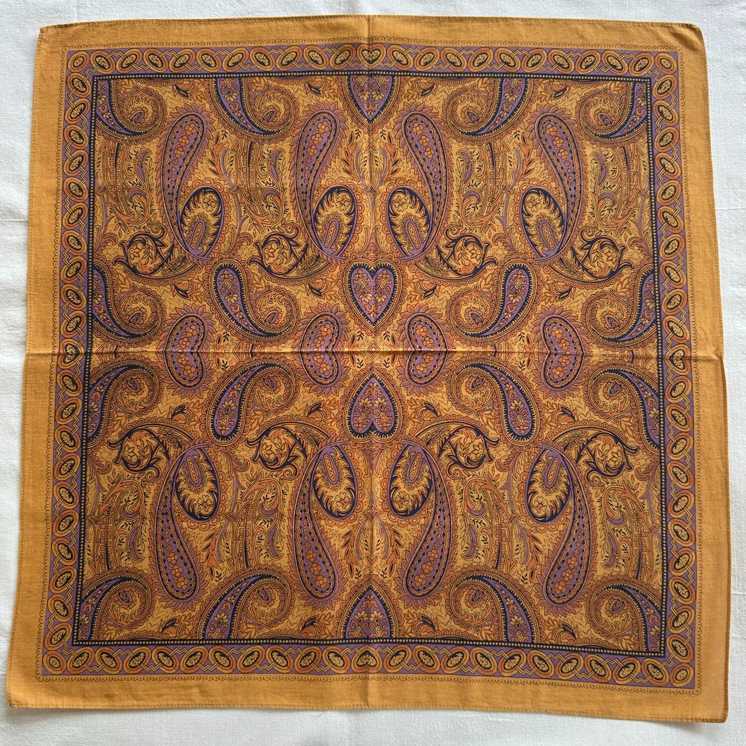 Mens Vintage Bandana Dark Yellow Cotton Purple Paisley Classic Handkerchief 20