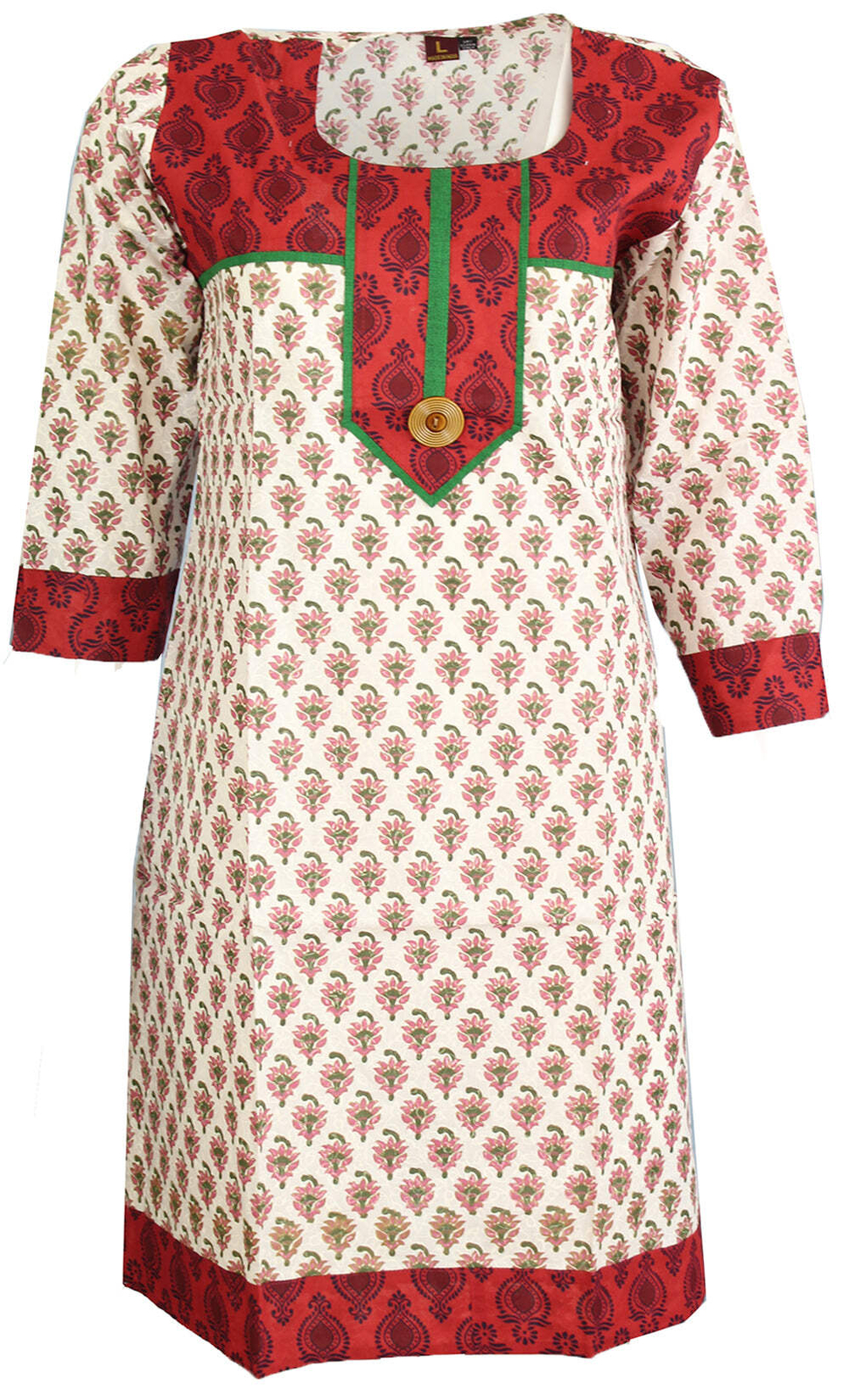 100 Cotton Round Neck Floral Design with Patch Work and Piping Long Kurti Kurta