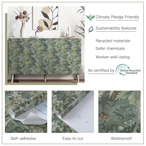 как выглядит Dark Green Peel and Stick Wallpaper Botanical Contact Paper 17.3"x78.7" фото