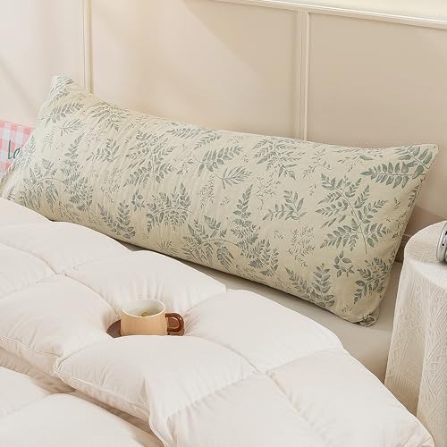 Pillowcase Boby Size with Green Botanical Plant Leaves Boby 20x54 Cream