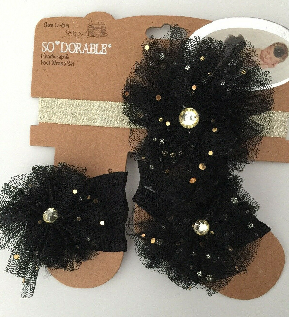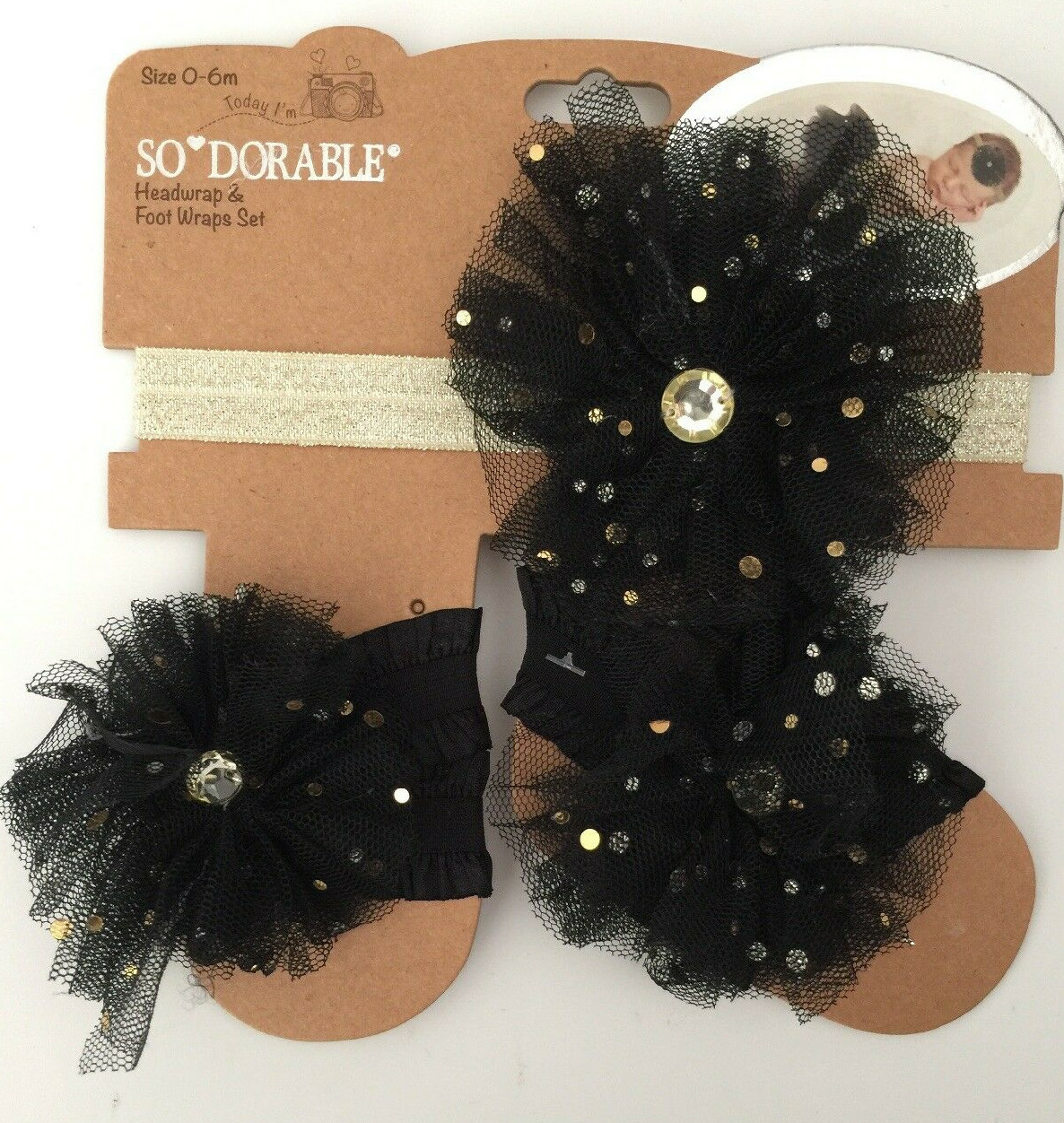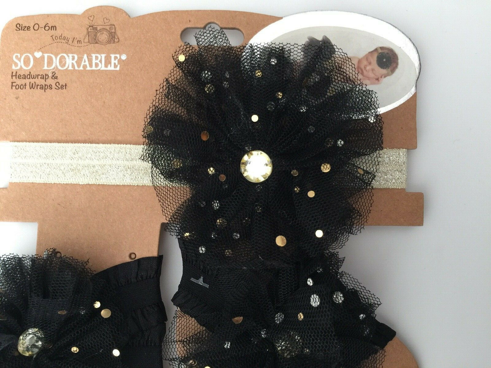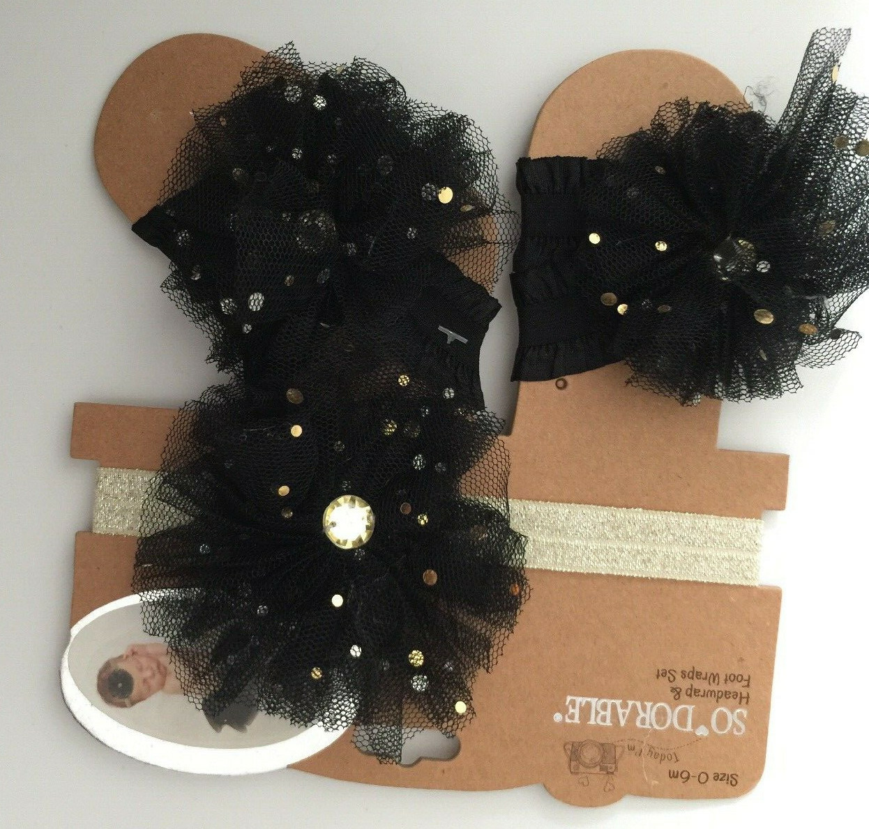 Black Tulle Gold Sparkly Infant Headwrap And Foot Wraps Set Size 0-6 M Festive