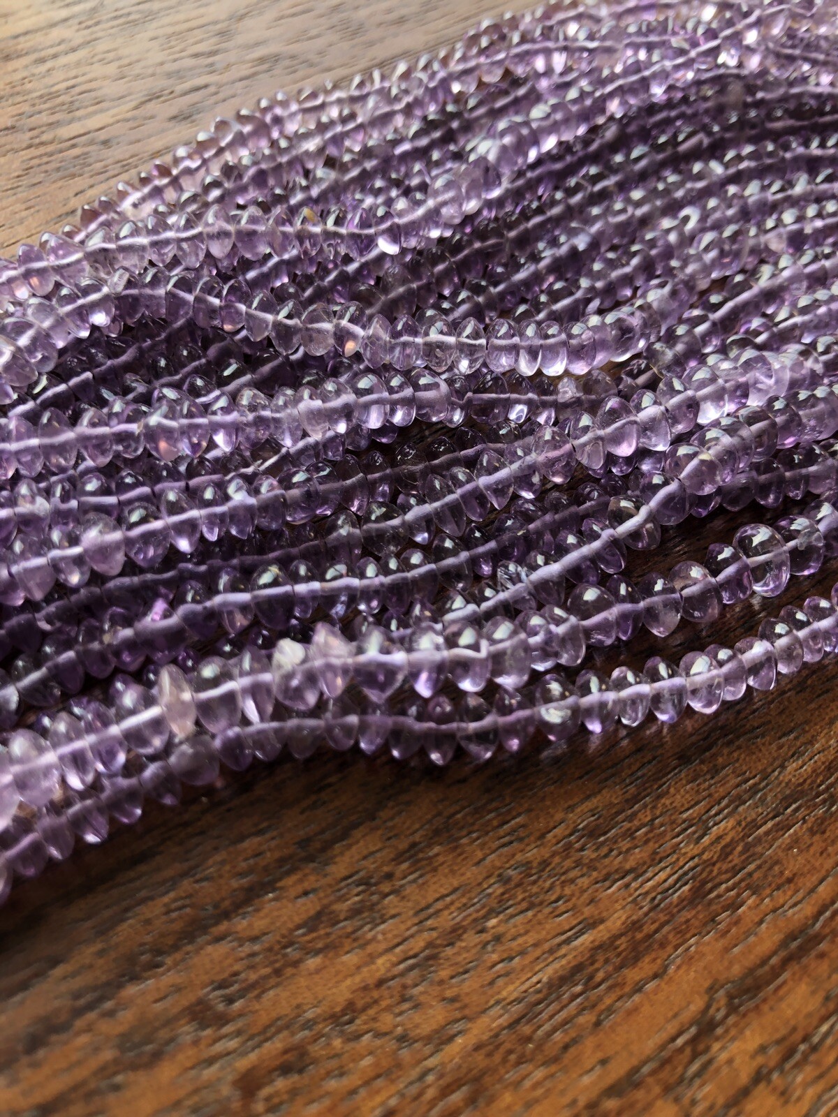 1 Strand Natural Amethyst Smooth Rondelle 3 Mm Gemstone Beads 14in