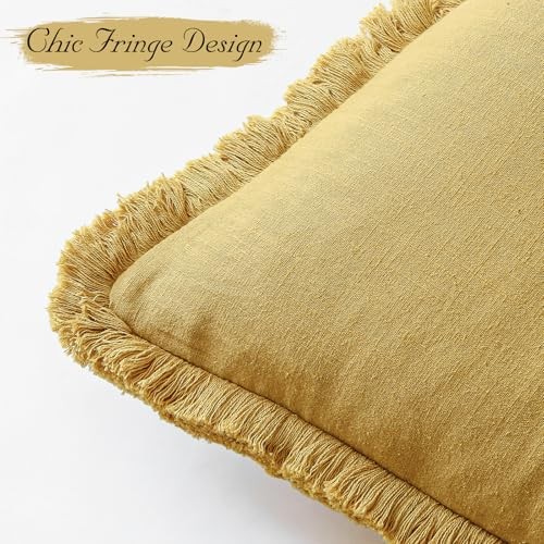 Set of 2 Linen Fringe Decorative Throw 18 x 18 Pack of 2 Honey Mustard