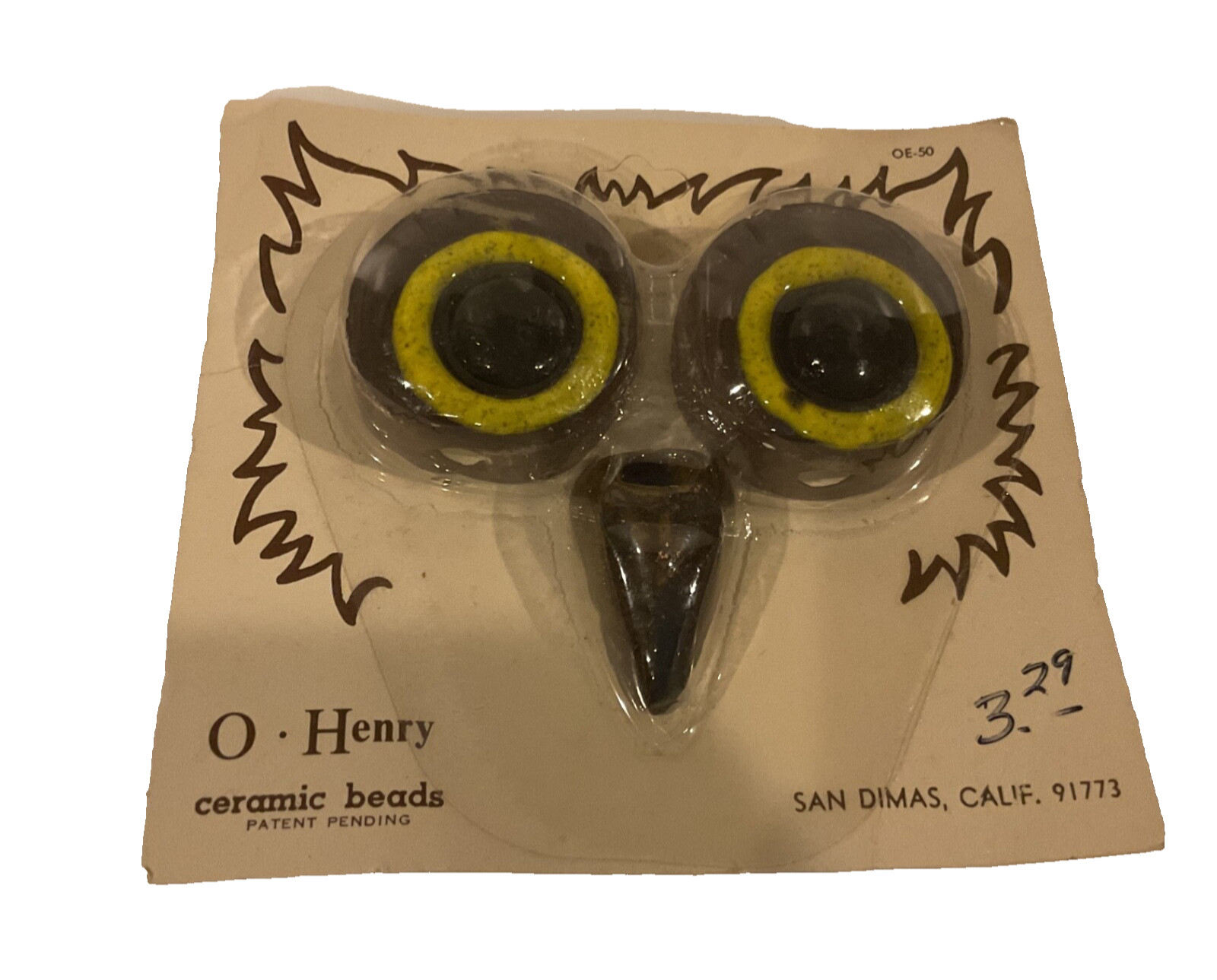 VTG Macrame Craft Ceramic Owl Eyes Beak Beads Brown Yellow Black San Dimas CA