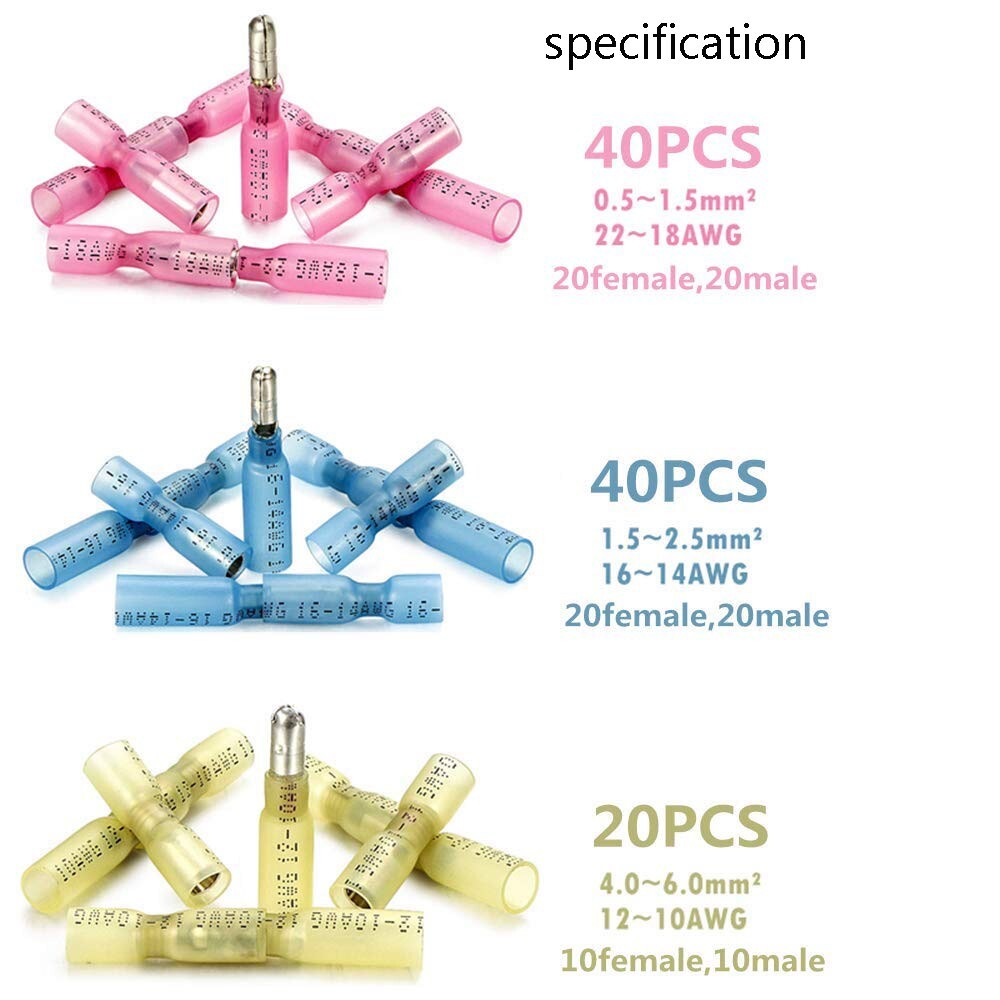 200PCS Waterproof Female Male Butt Wire Heat Shrink Bullet Connectors Crimp kits