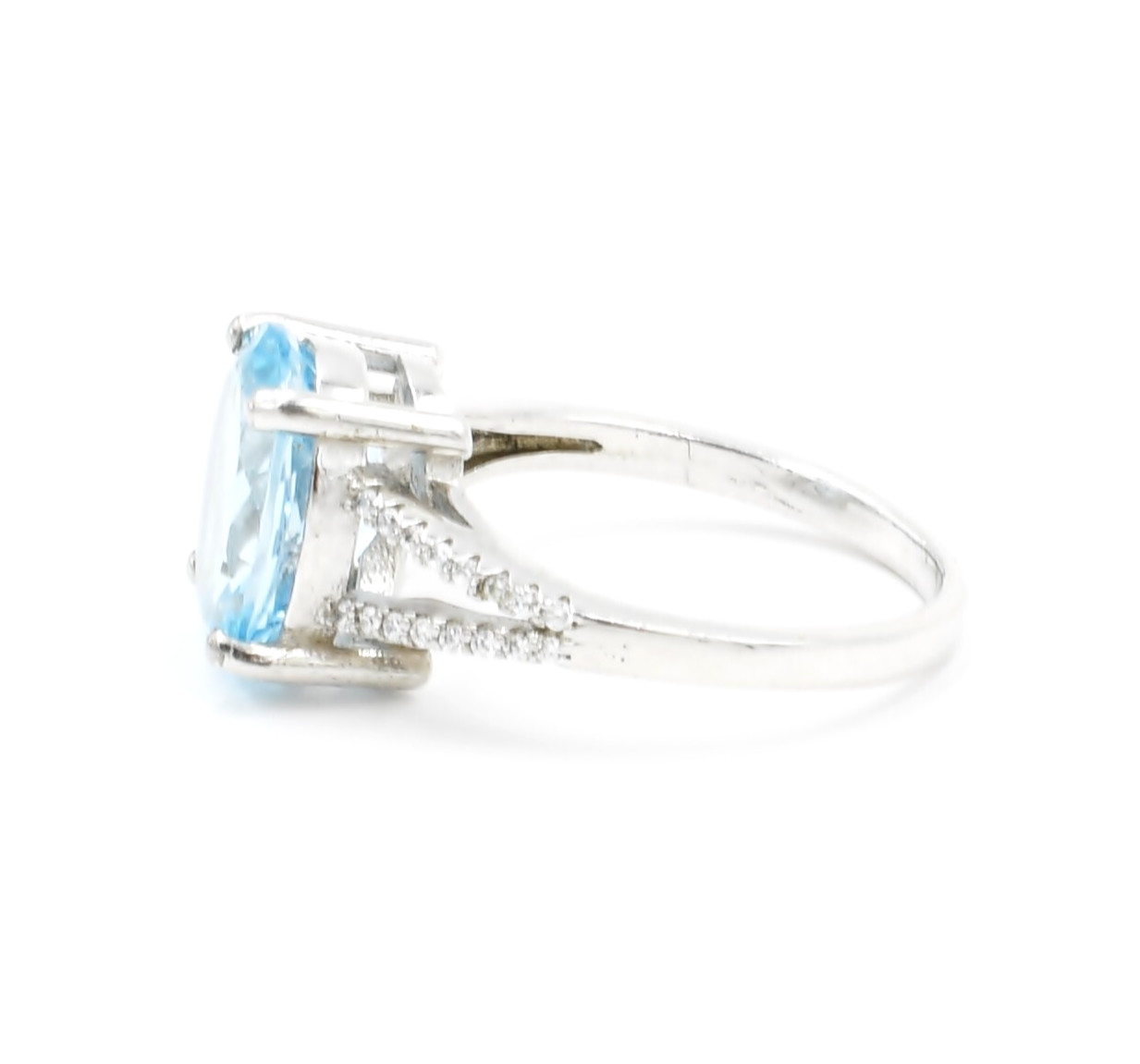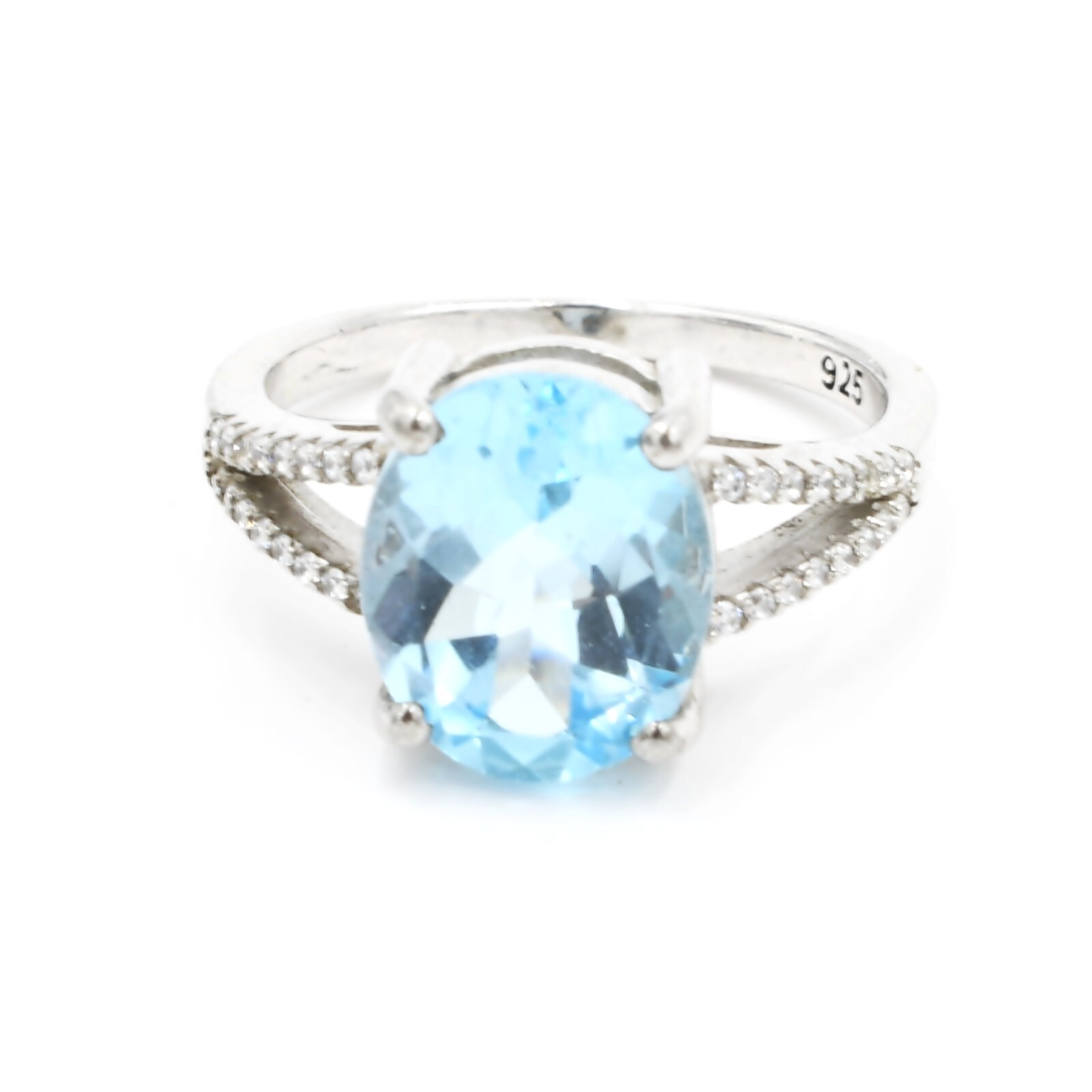 Sterling Silver 925 Spinel CZ Gemstone Open Work Cocktail Ring Size 7 3/4