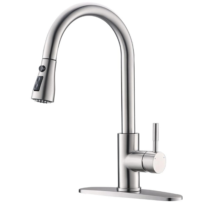 Brushed Nickel Kitchen Faucet with Pull Down Sprayer, Stainless Steel