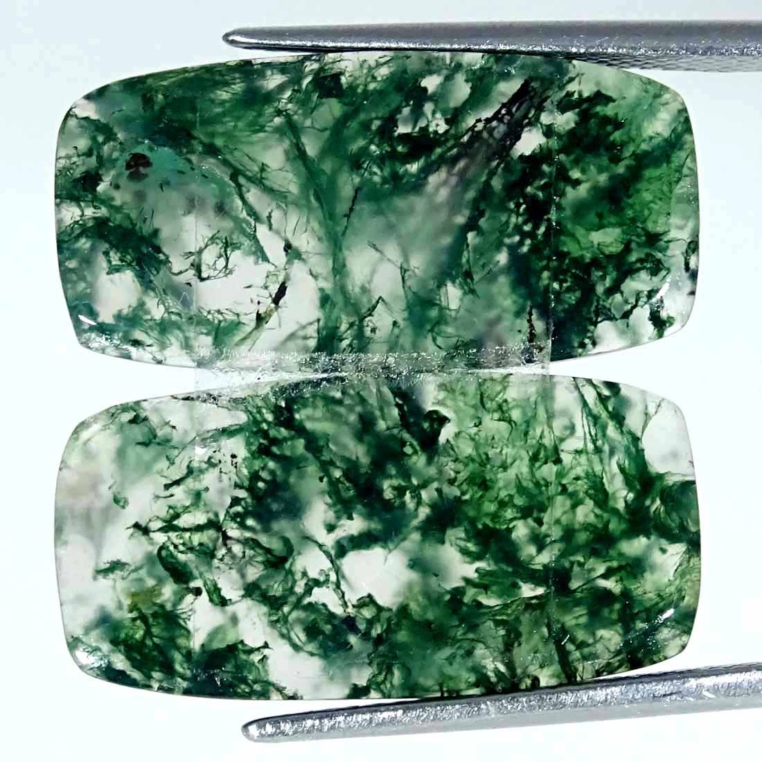 как выглядит 18.10Cts Natural Green Moss Agate Pair Cushion Loose Gemstone фото