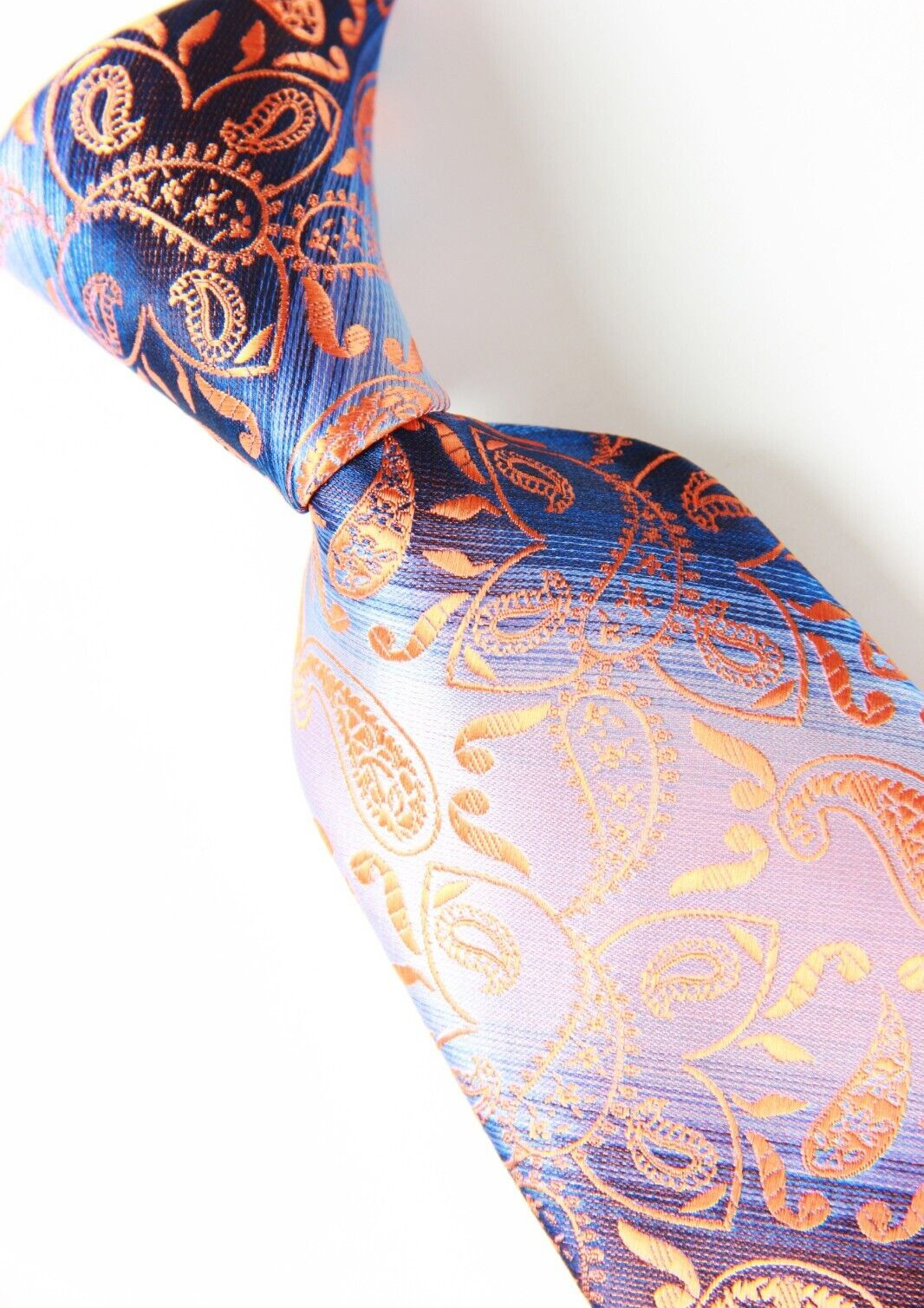 New Classic Paisley Orange Blue JACQUARD WOVEN 100 Silk Men's Necktie Tie