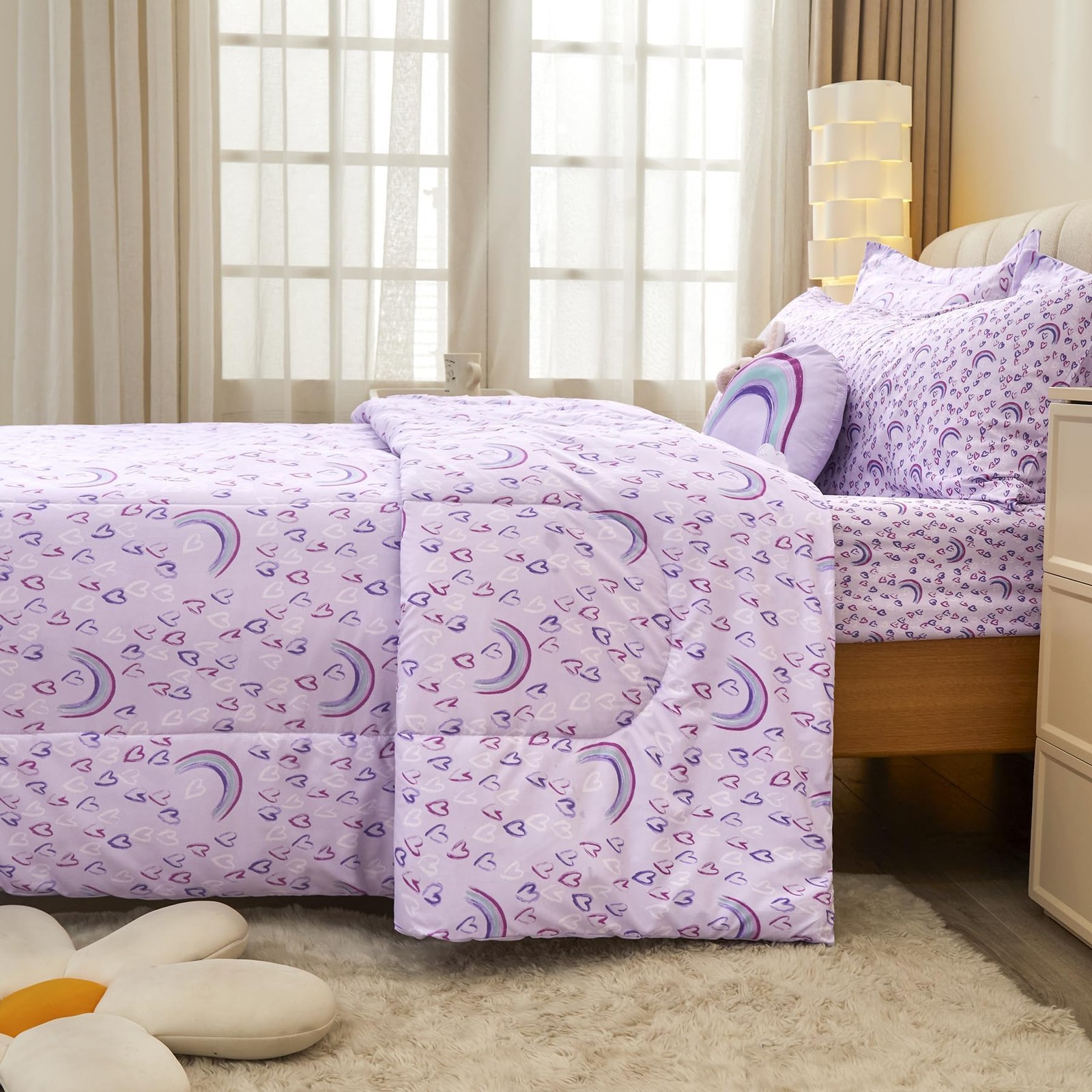 Full Size Comforter Sets for Girls Kids, 8 Pieces Bed in a Bag Purple Love Ra...