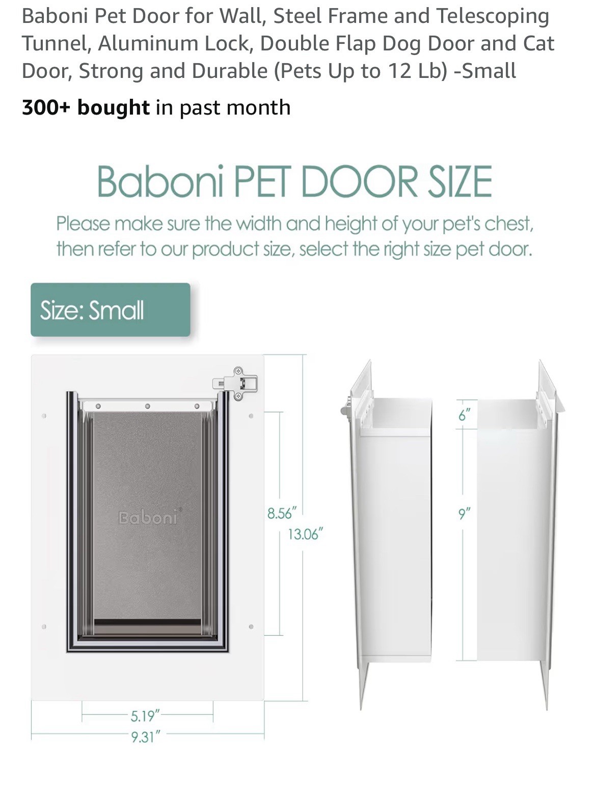 Baboni Pet Door Wall Steel Frame and Telescoping Tunnel Aluminum Lock SMALL NEW