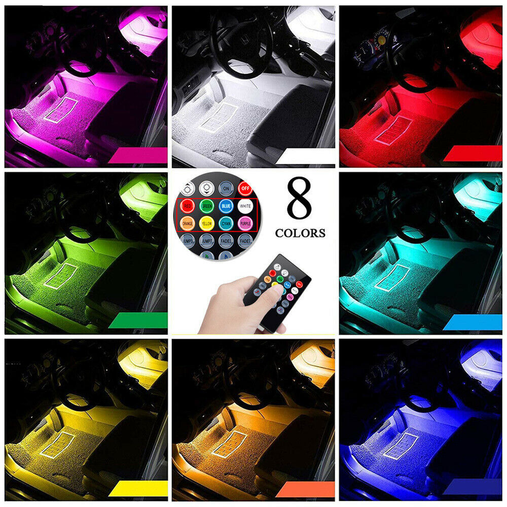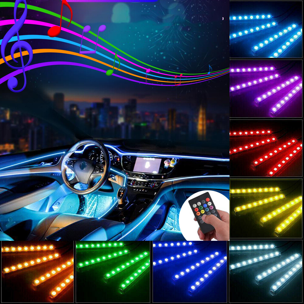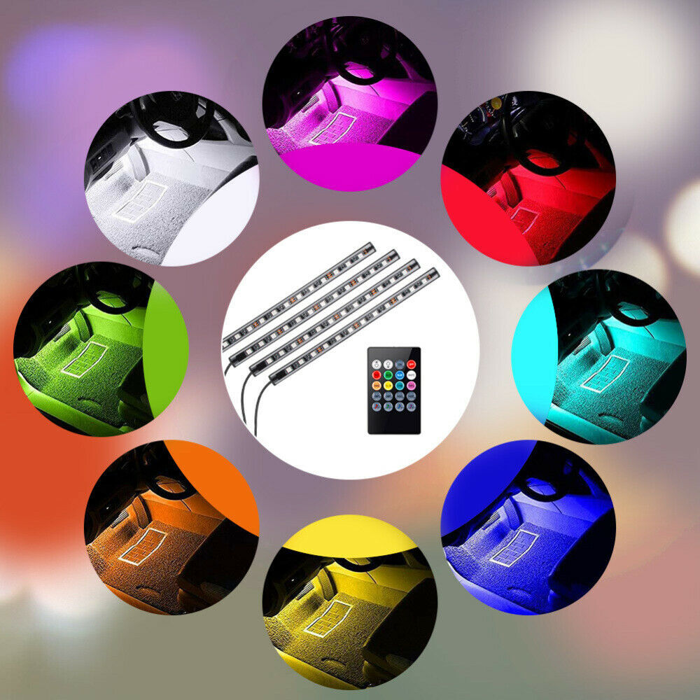 4PC Car RGB color 48 LED Lights Strip Interior Neon Atmosphere Lamp With Control