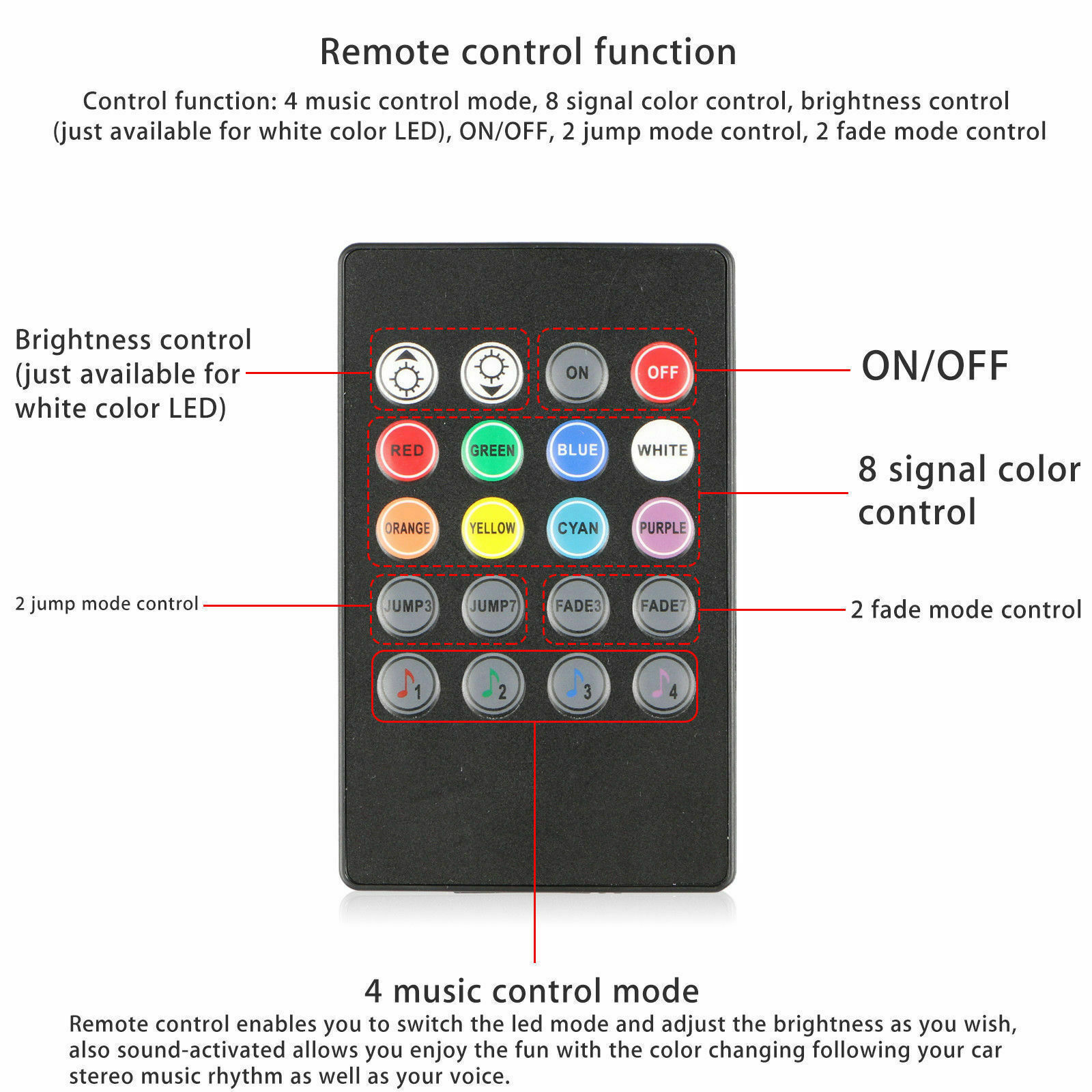 Особенности: Wireless IR control, Car Atmosphere Lamp