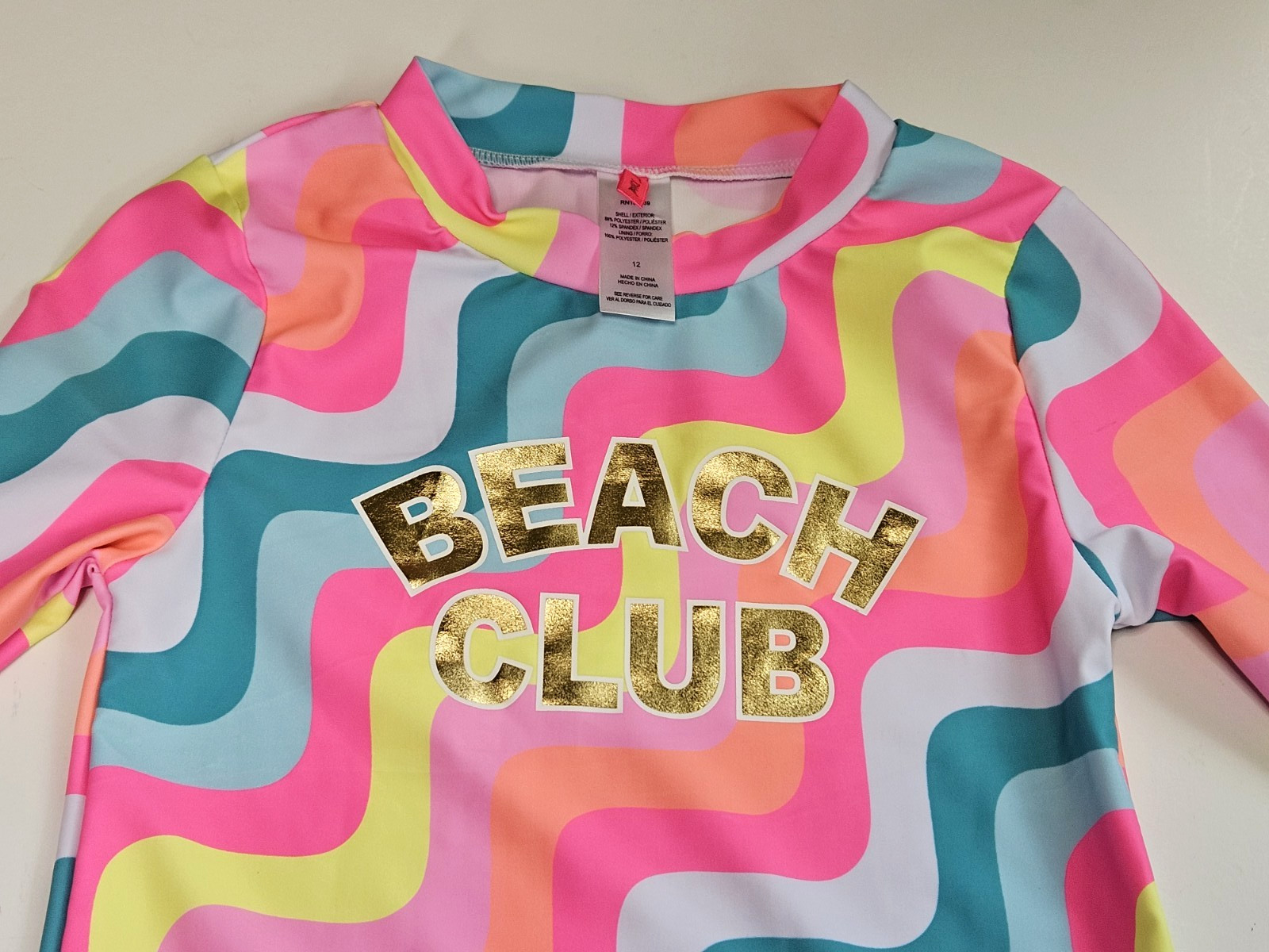 как выглядит Betsey Johnson Girls 12 Long Sleeve 2 Pc Rash Guard Tankini Swimsuit Beach Club фото