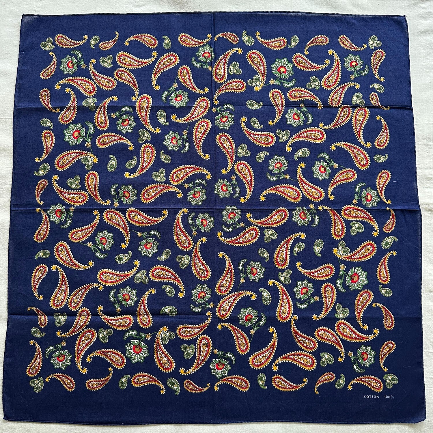 Vintage Bandana Navy Blue Cotton Red Paisley Ethnic Floral Art Handkerchief 21