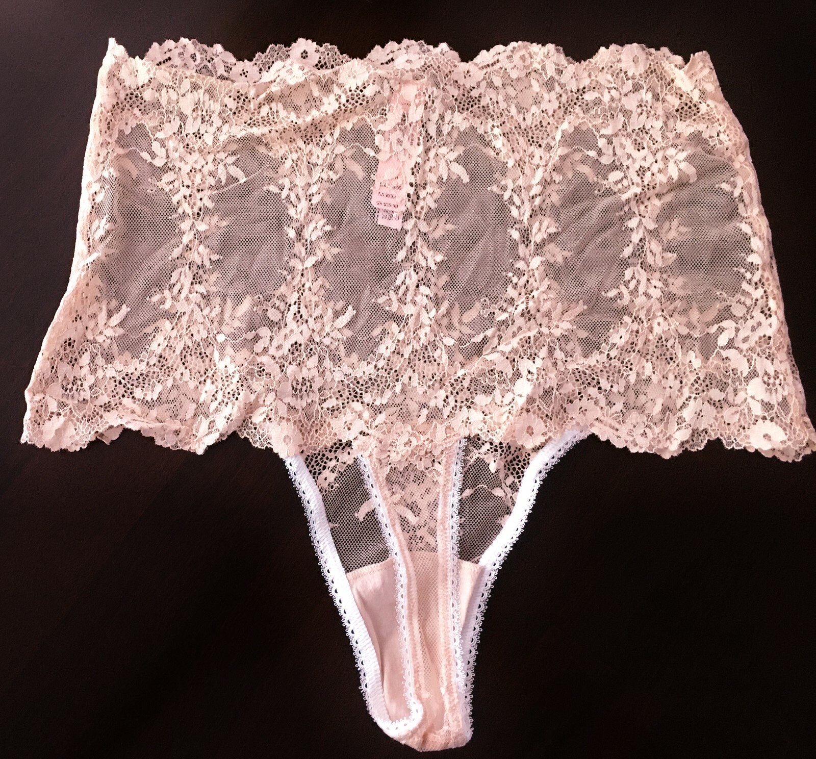 Victorias Secret Dream Angels High Waist Floral Lace Thong Panty Blush Nwt S
