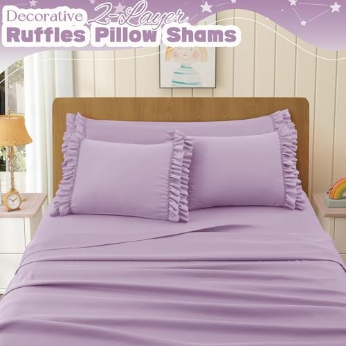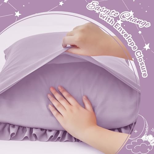 Ruffled Pillow Cases Set of 2, King Microfiber King - 20 x 36 Inch Purple