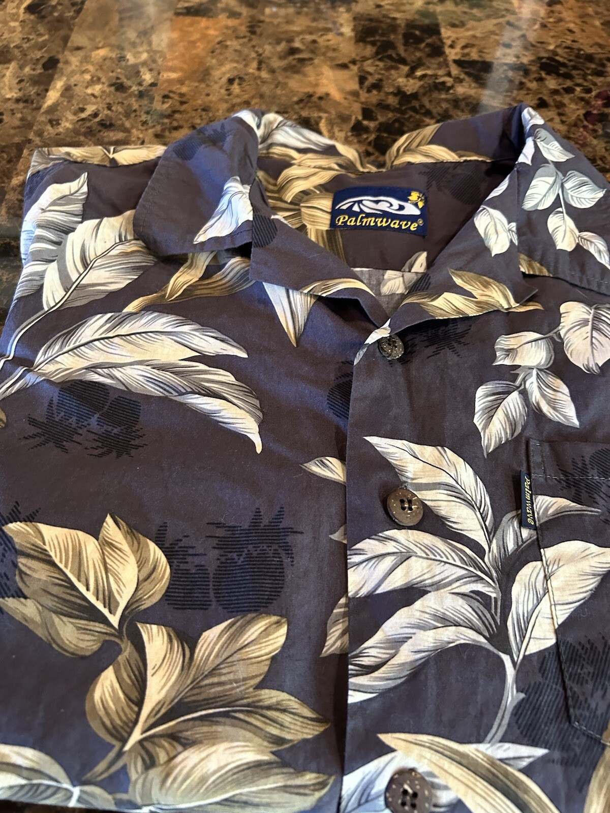 Palmwave Hawaii Men s Blue Size Medium Pineapple Floral Cotton Summer Vacation