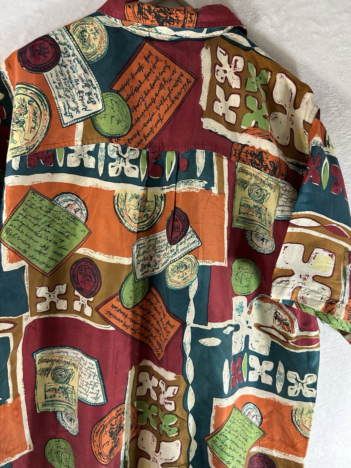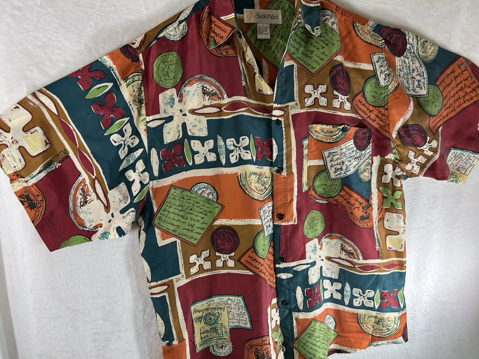 как выглядит Silk Plus Hawaiian Shirt Men Large Short Sleeve Button Up Silk Colorful Casual фото