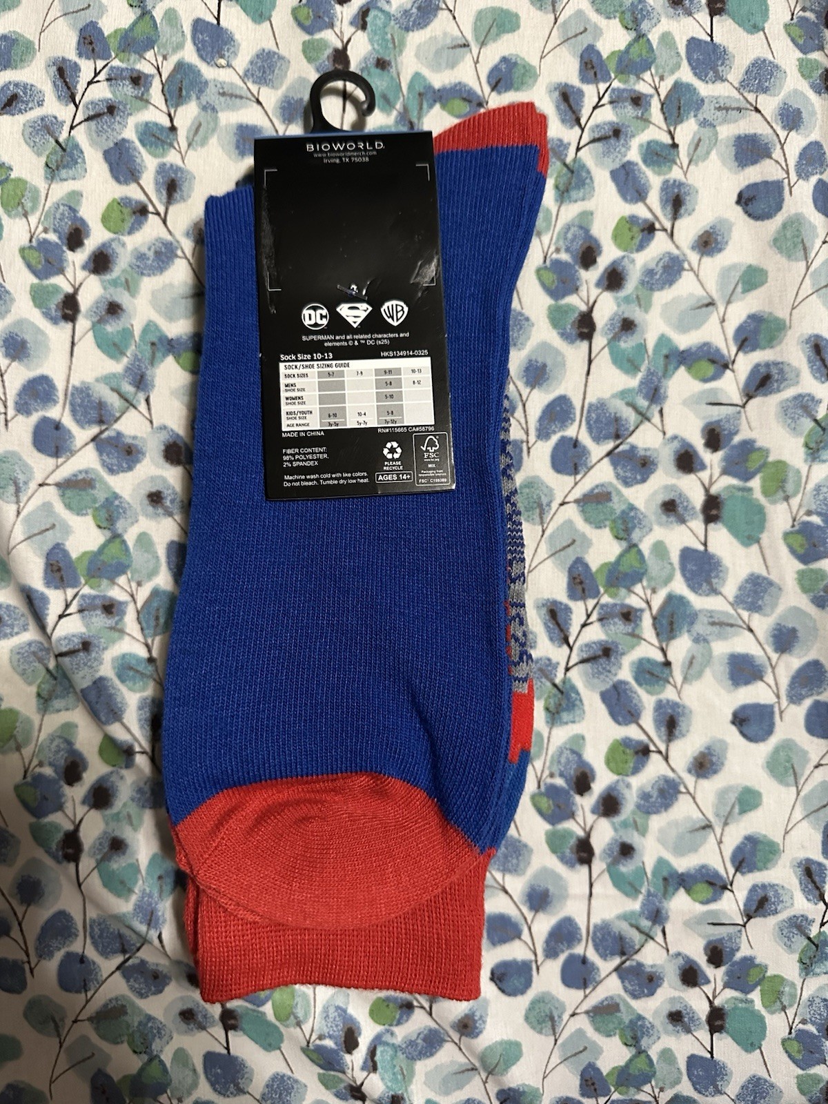 SUPERMAN Logo DC Comics Novelty Crew Socks 2 Pairs Adult Shoe Size 8-12 NWT