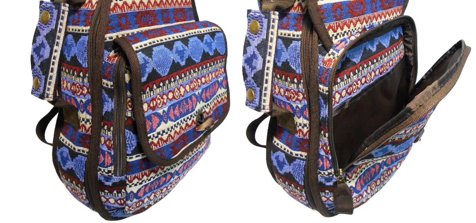21 Soprano Bohemia Pattern Tribal Fabric Ukulele Gig Bag BLUE MULTI COLORS