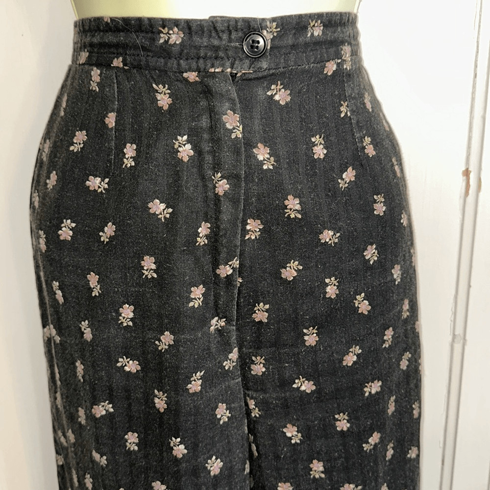 Vintage 70s Patty Woodard black floral fully lined high waisted wide leg pants