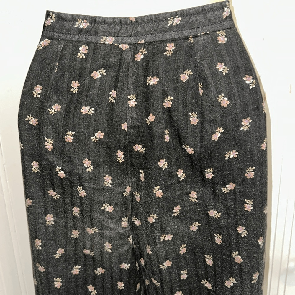 как выглядит Vintage 70s Patty Woodard black floral fully lined high waisted wide leg pants фото