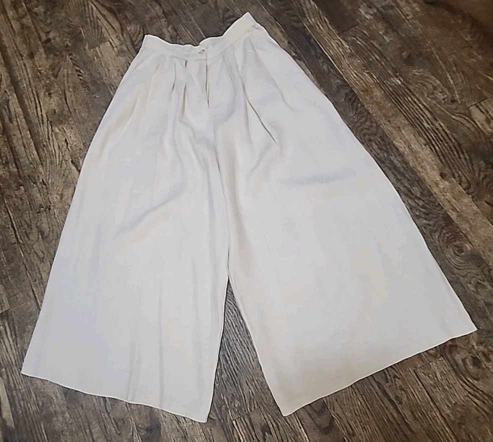как выглядит Vintage 1970s Gaucho Pants Wide Leg Cullotts Ivory Linen Pleated Front Size 4 фото