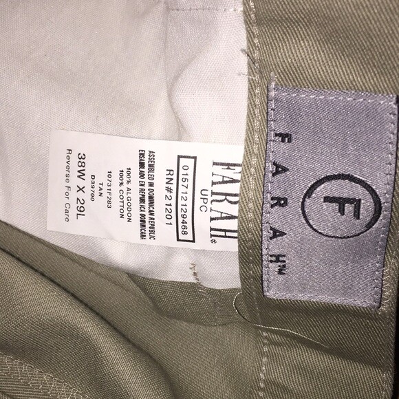 как выглядит NWT Farah Khaki Tan Stain Free Pleated Pants 38x29 фото