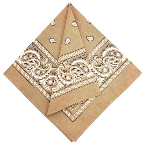 100 Cotton Bandana for Men Women 22 x 22 Paisley Pattern Handkerchief Tan