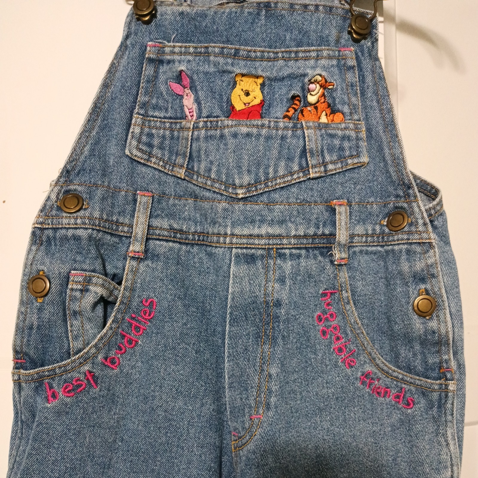 VTG Disney Winnie the Pooh Tigger Teens Blue Denim Overall Shorts M FRIENDS