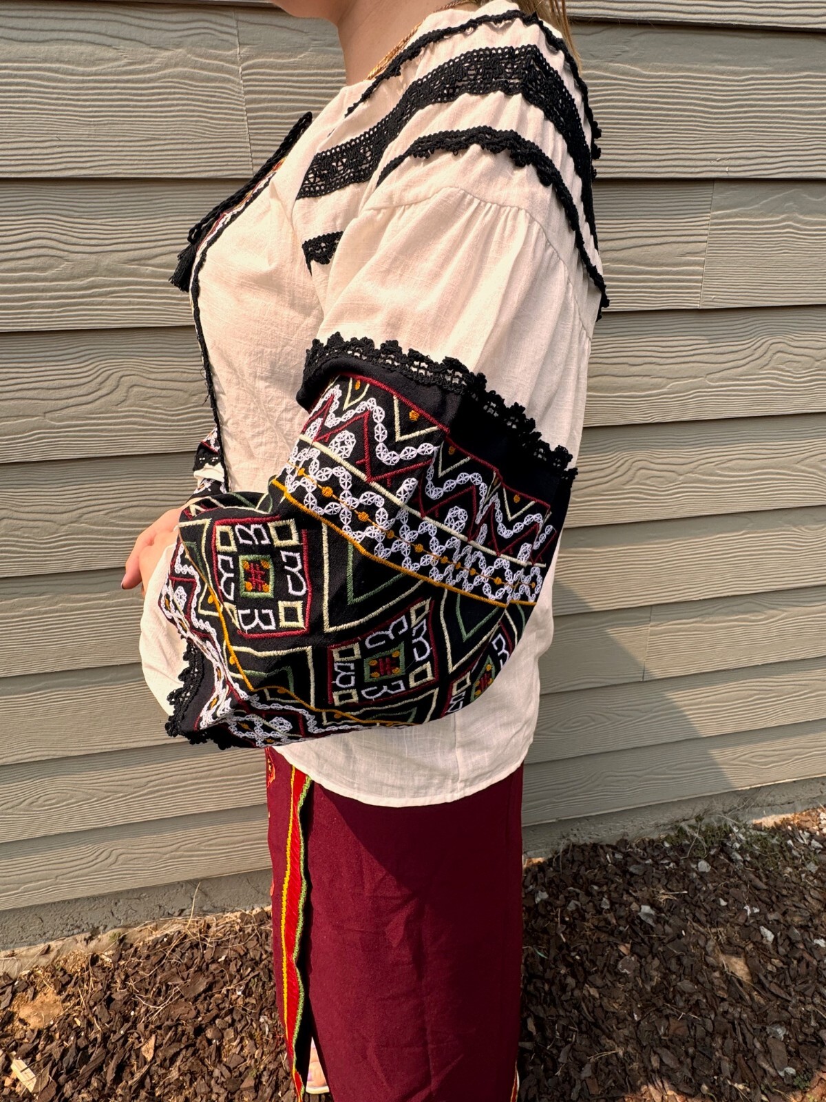 Ukrainian Vyshyvanka Blouse Embroidered Shirt L Boho Embroidery