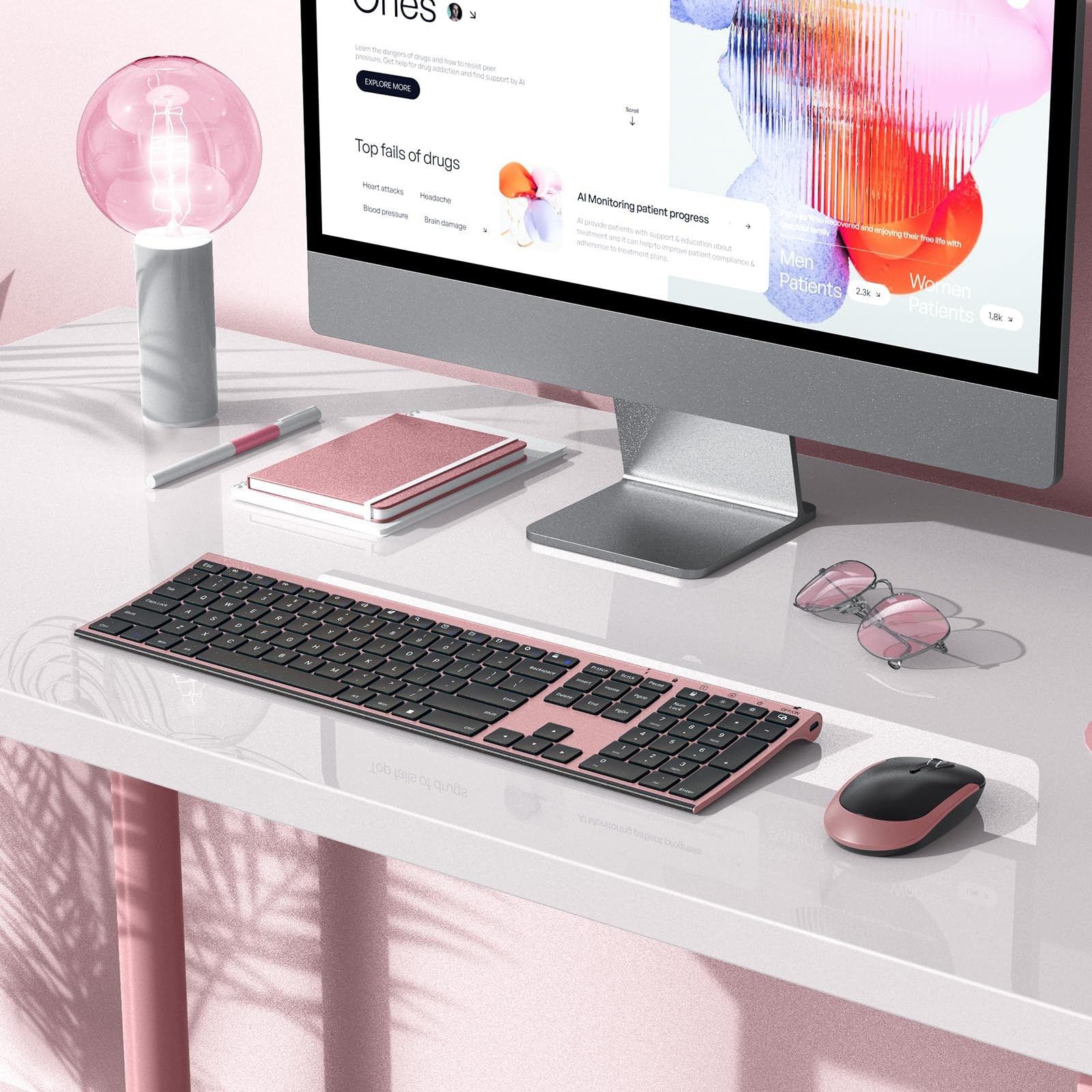 Wireless Keyboard and Mouse, 2.4GHz Rechargeable Compact Quiet Full-Size Keyb...