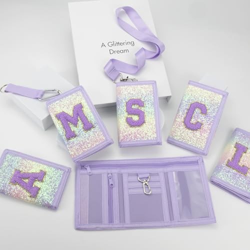 Girls Wallet for Kids Initial Glitter Wallets Trifold with Zipper Pink Purple L