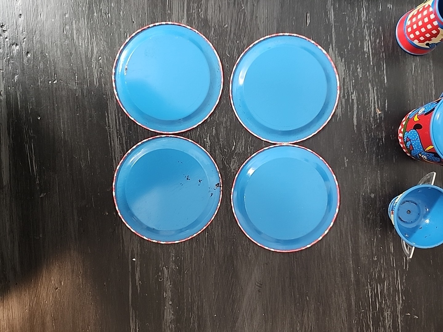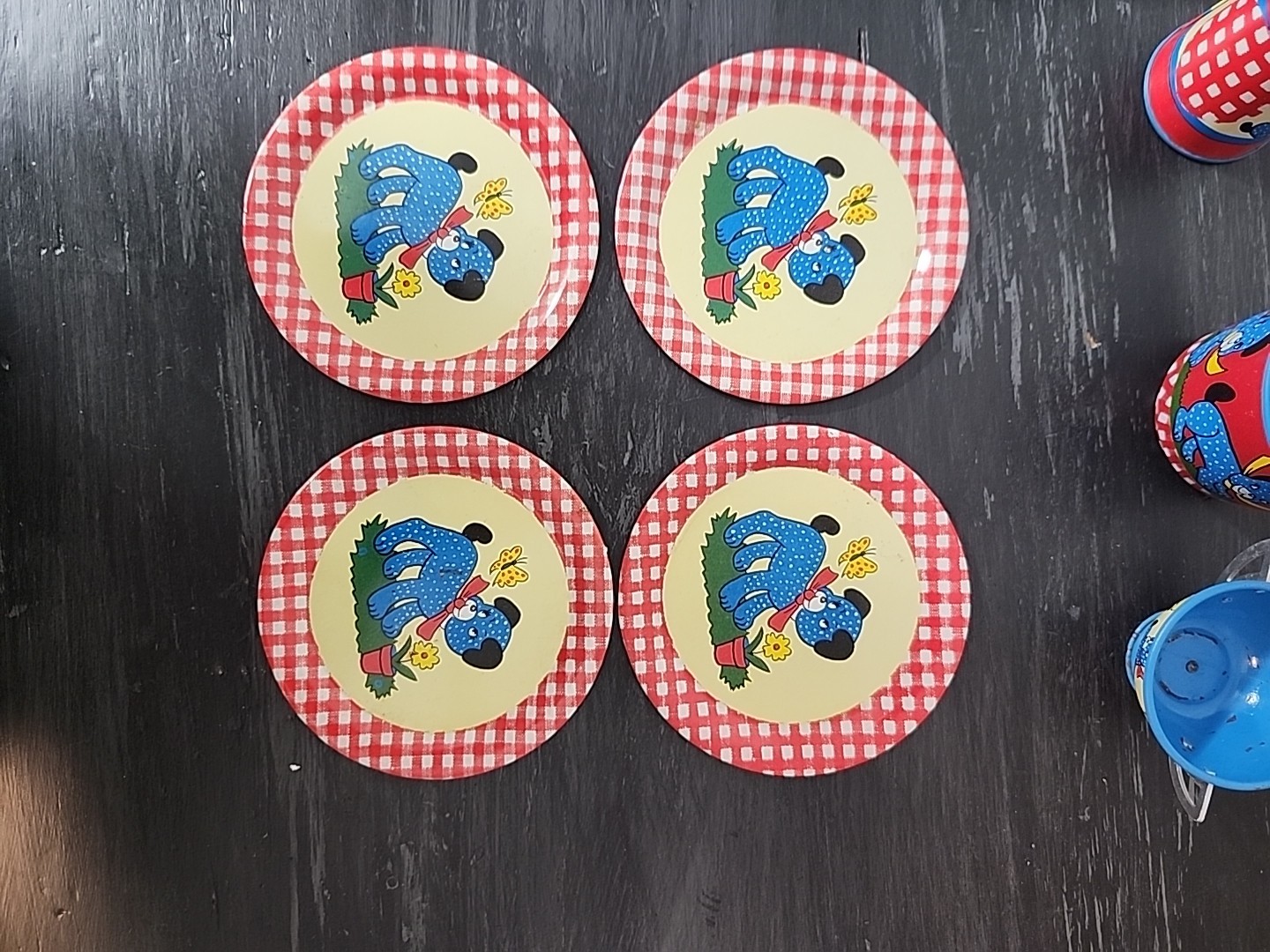 как выглядит Vintage OHIO ART 1950s 20 Piece Set Tin Litho Childs Tea Set Girl w/ Puppy Dog фото