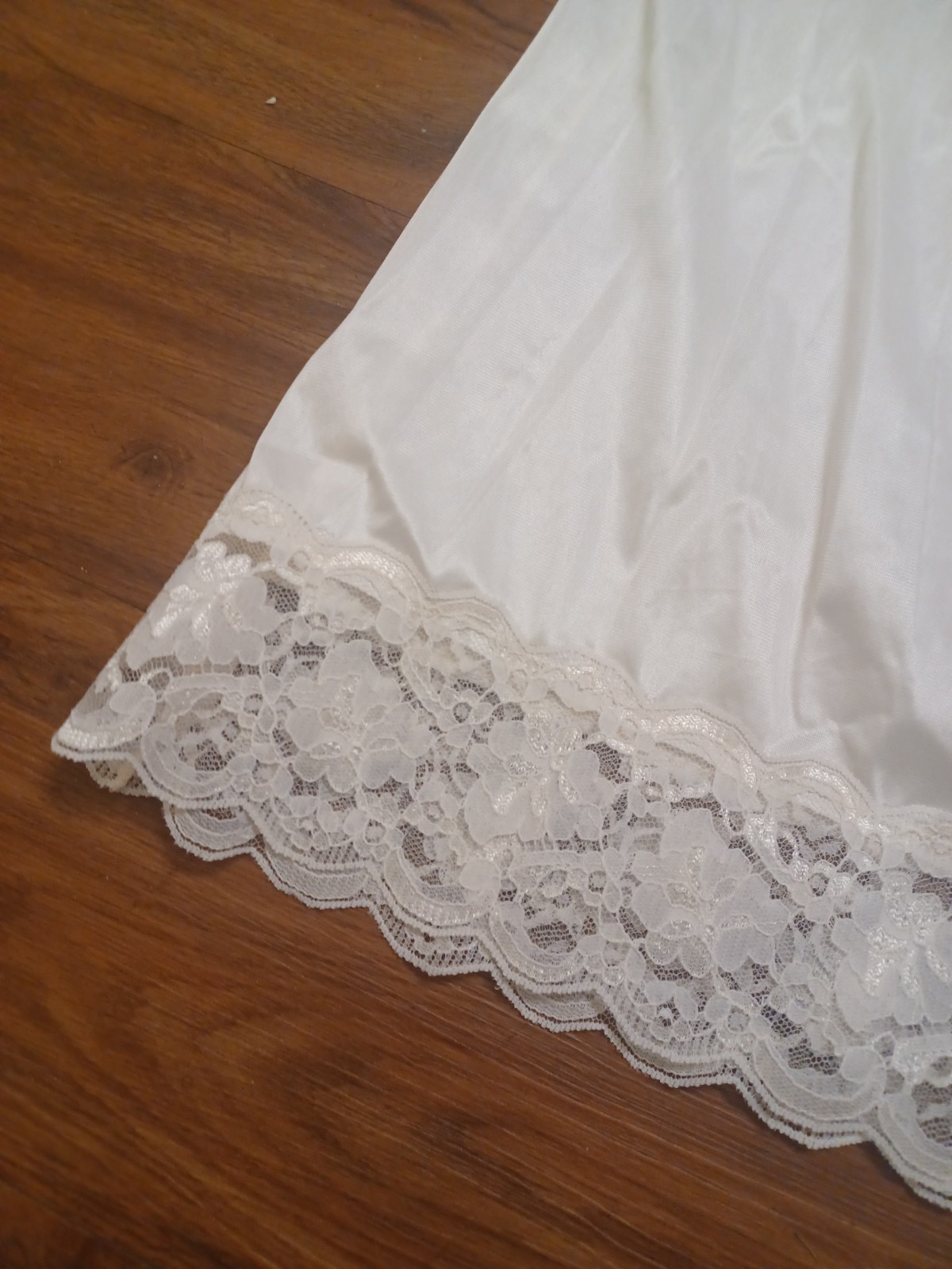 VTG Ashley Taylor Half Skirt Slip Side/Hem Lace Nylon Tricot Antron Ivory Sz Med