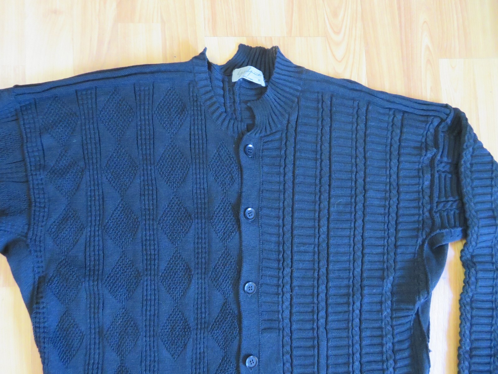 как выглядит MENS YOHJI YAMAMOTO BLACK CARDIGAN ASYMMETRICAL KNIT SWEATER, SZ 3 фото