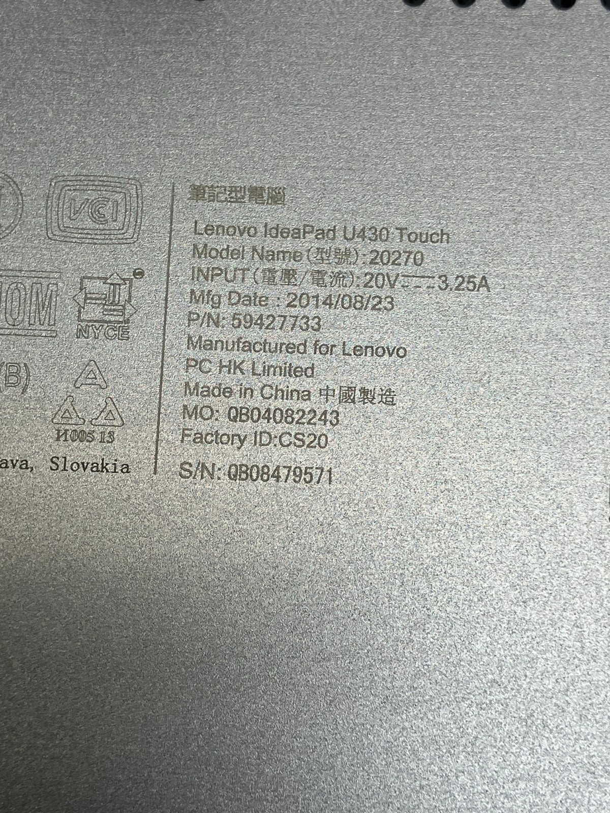 MPN: IDEAPAD U430 TOUCH, 59427733