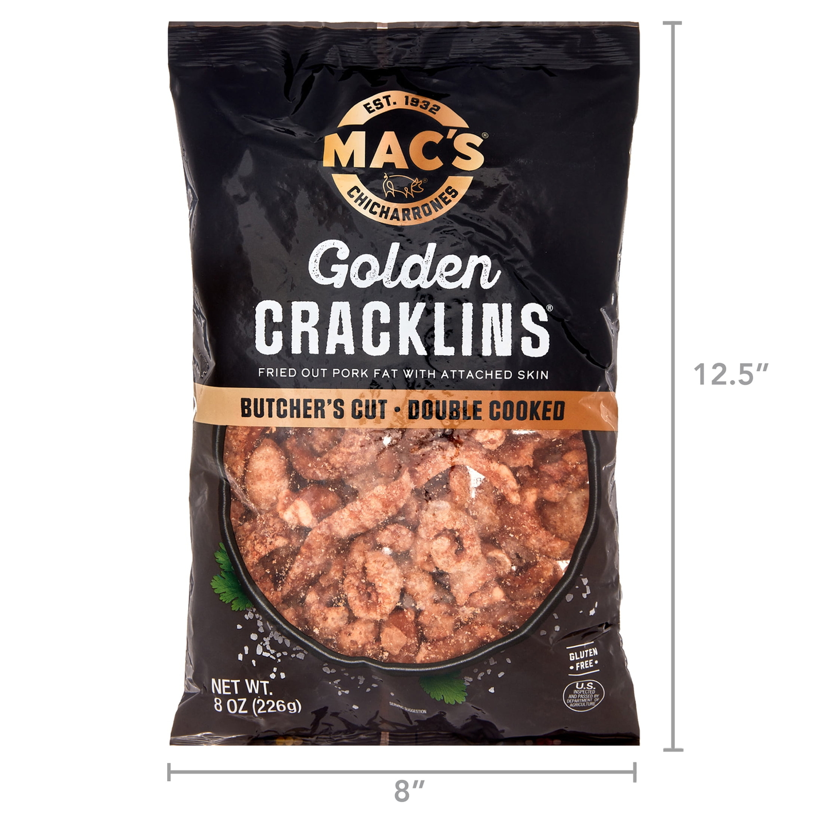 Mac's Chicharrones Golden Pork Cracklins, Fried Pork Fat with Skin, 8 oz Bag