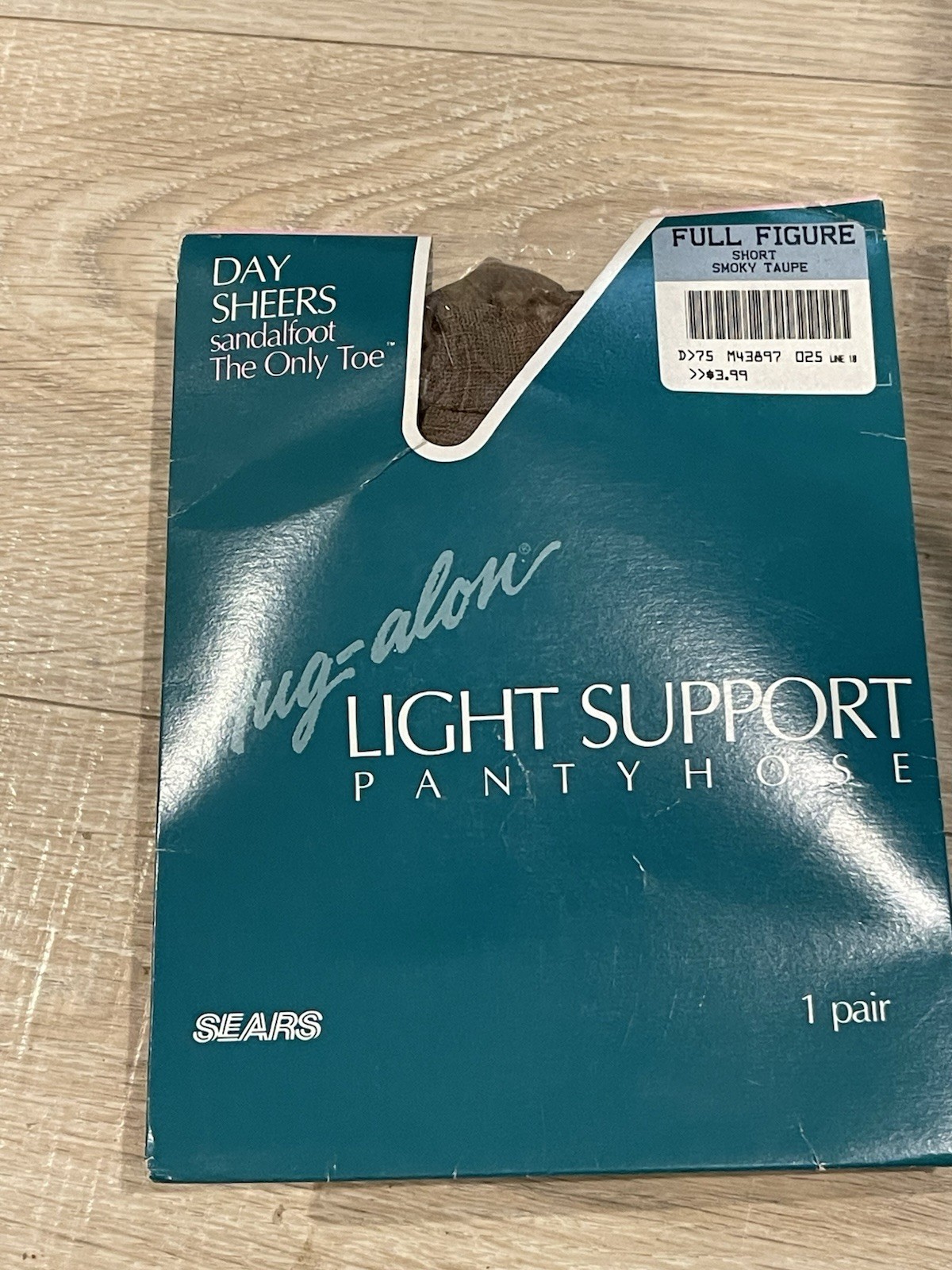 Vintage Sears pantyhose sandalfoot Hug-along Full Figure Short Smoky Taupe