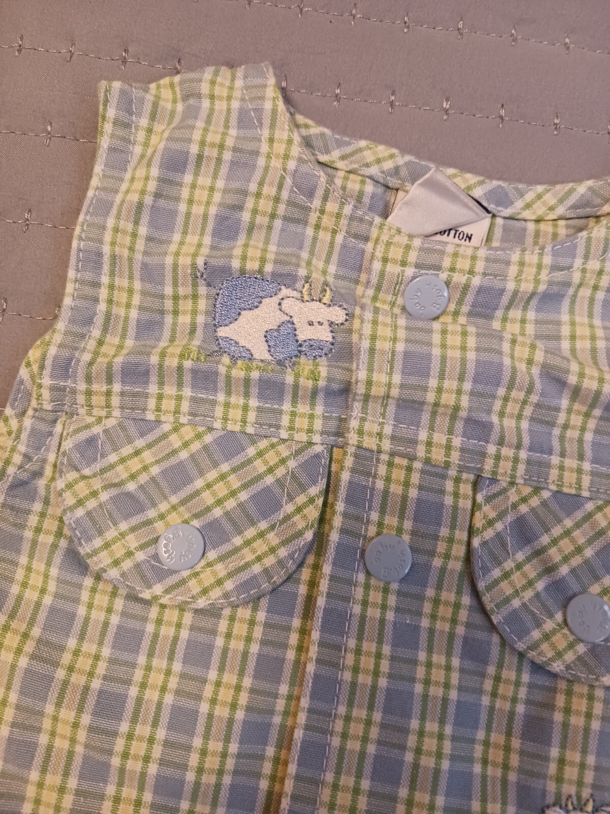 как выглядит Vtg 90s Baby Oshkosh Bgosh Romper Cow Embroidery Plaid 0-3m Newborn Reborn фото