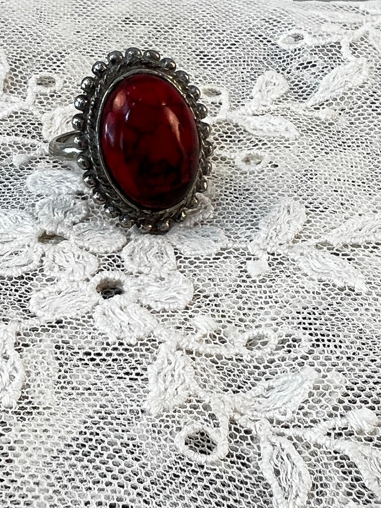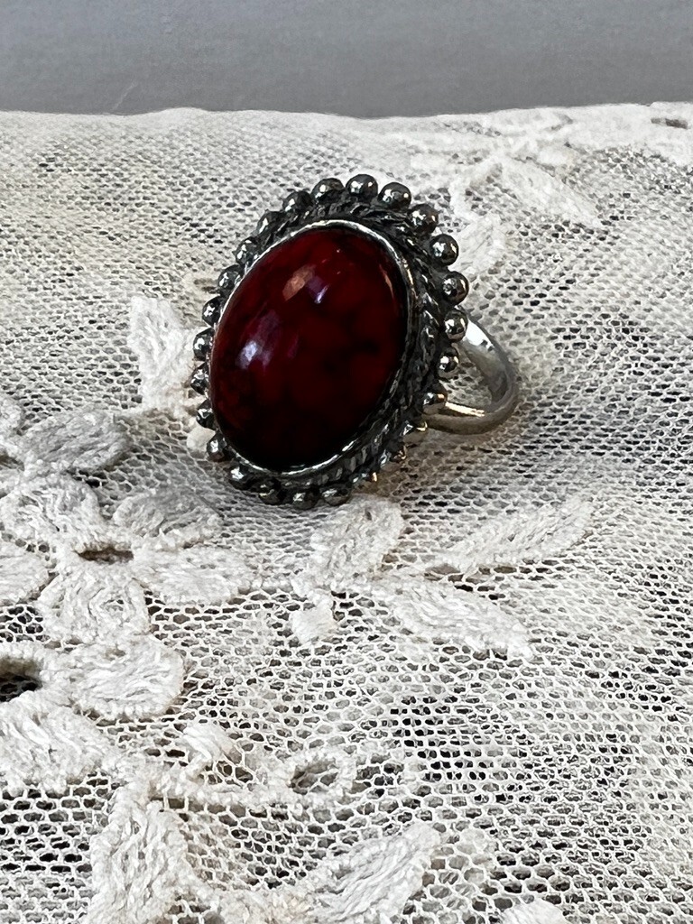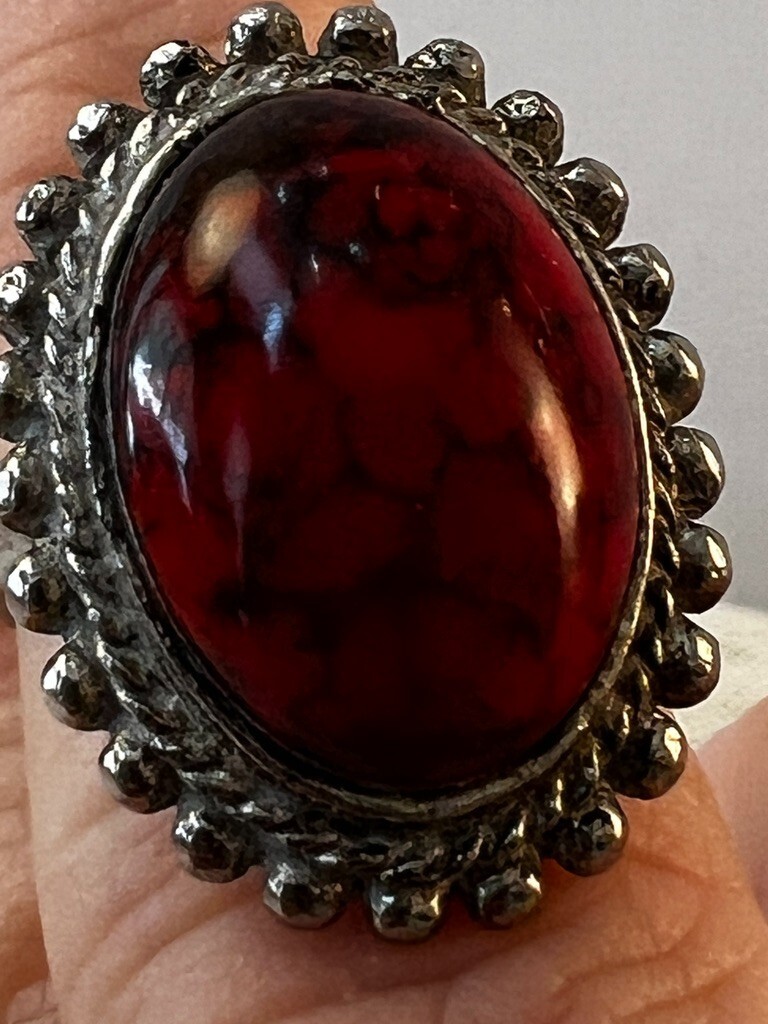 как выглядит Vintage Spotted Jasper Ring Adjustable Silver Toned Size 6.25" фото