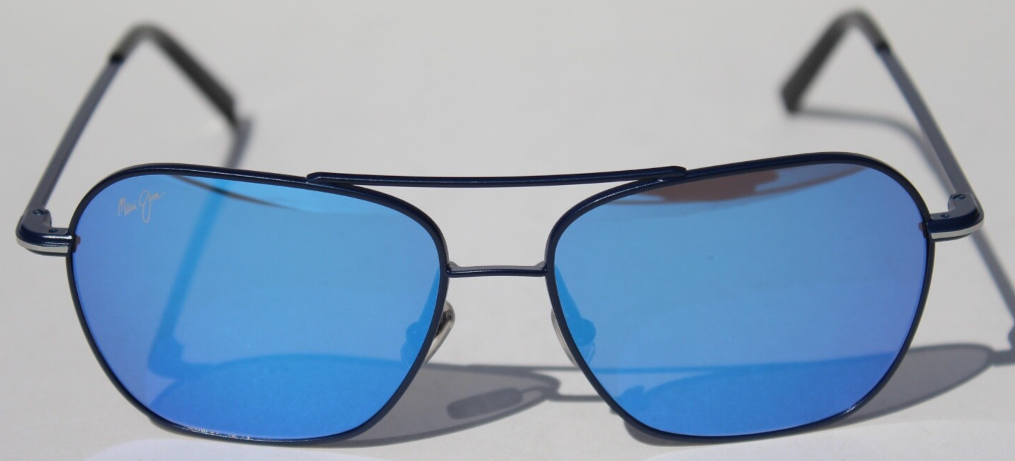 MAUI JIM Mano POLARIZED Sunglasses B877-03 Navy Silver Stripe/Blue Hawaii NEW