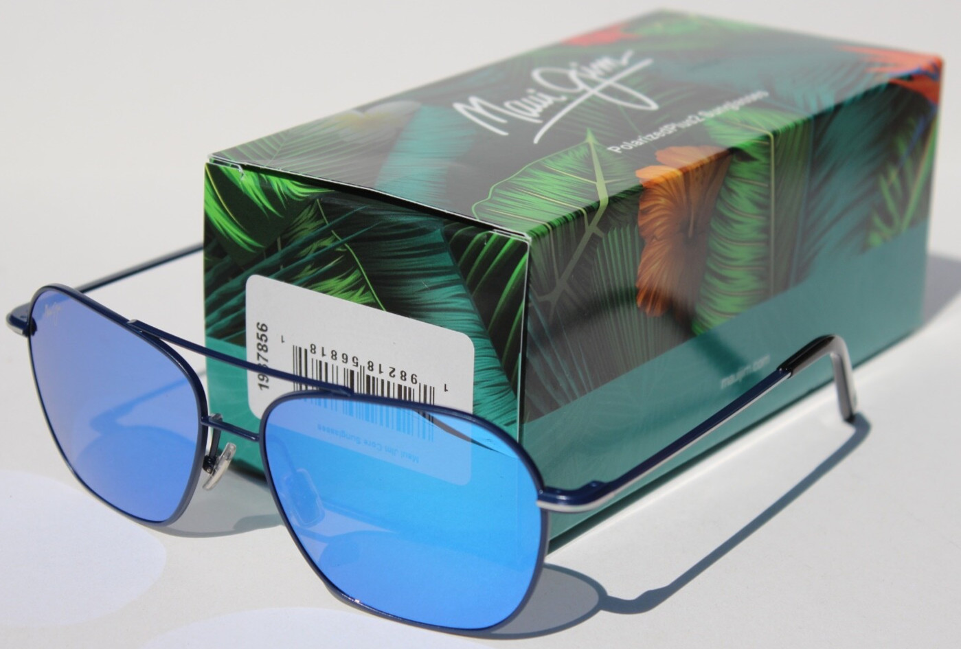 как выглядит MAUI JIM Mano POLARIZED Sunglasses B877-03 Navy Silver Stripe/Blue Hawaii NEW фото